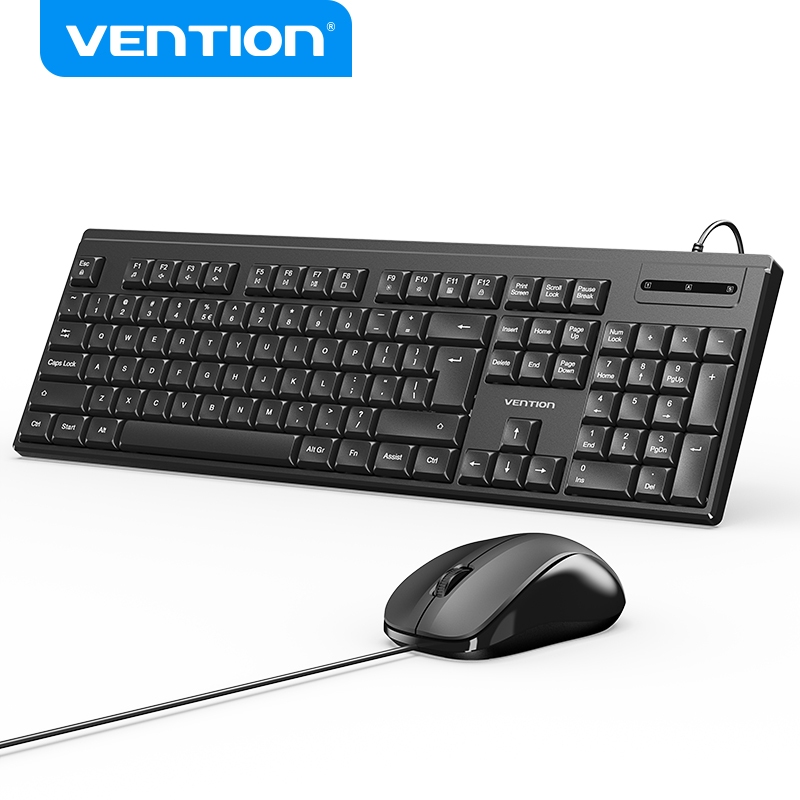 Vention Wired Entry Level Keyboard & Mouse (Black) Office School Home Wireless Keyboard Mouse