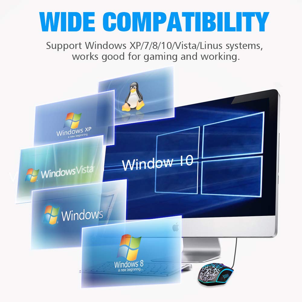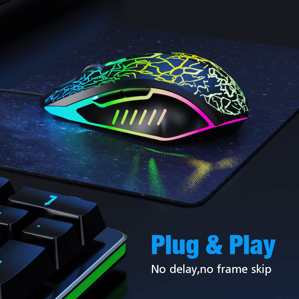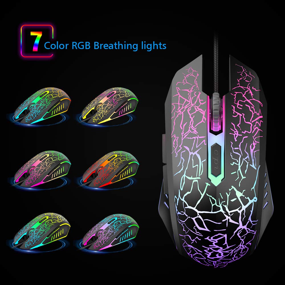 VersionTECH. RGB Gaming Mouse, Ergonomic USB Wired Optical Mouse Mice with 7 Colors LED Backlight, 4 DPI Settings Up to
