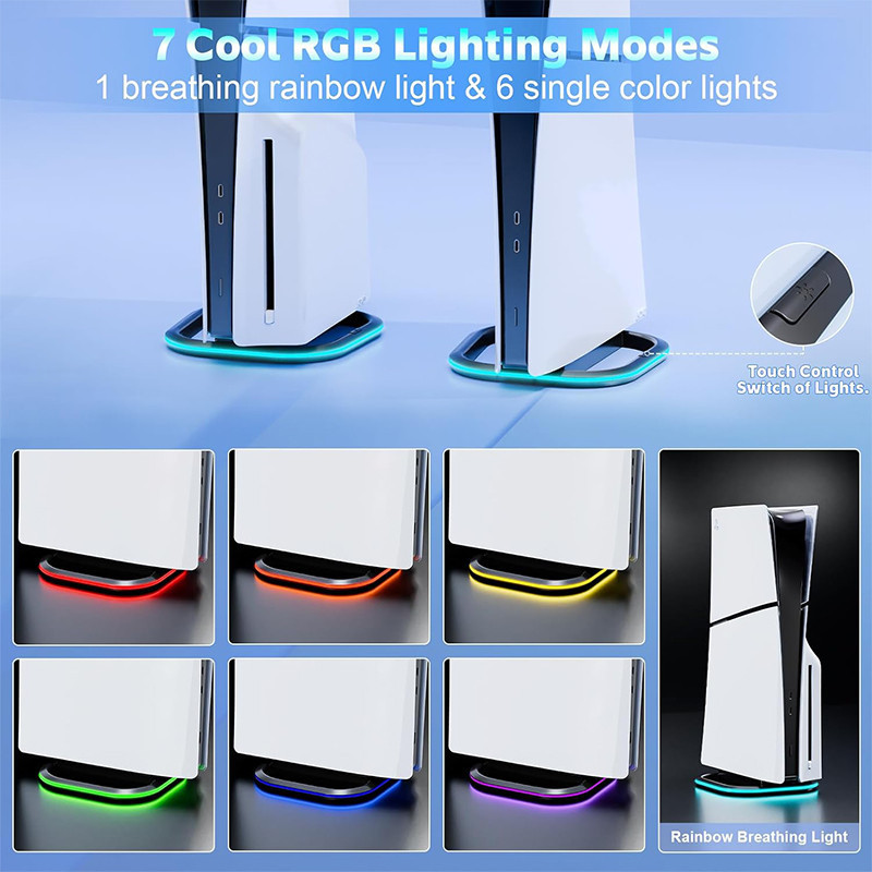 Vertical Stand for PS5/PS5 Slim Consoles, Playstation 5 Vertical Stand with 7 RGB Lights for PS5 Digital/PS5 Disc