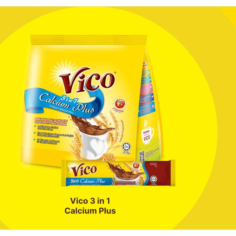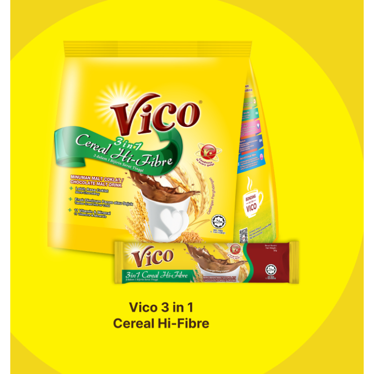 Vico 3 In 1 / 3IN1 / ORIGINAL / Malt Drink / HI FIBER / CALCIUM PLUS / LESS SWEET / 2KG / 1.4KG / 900G / 700G / 400G