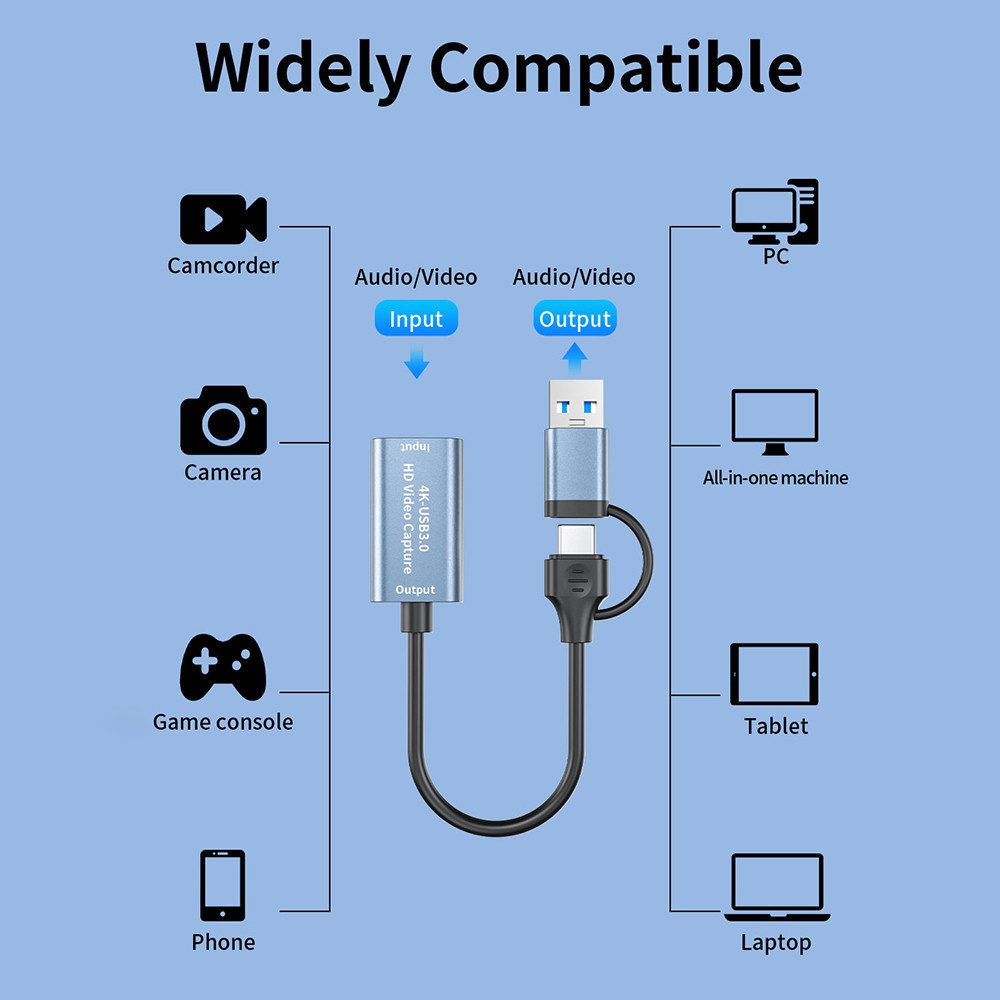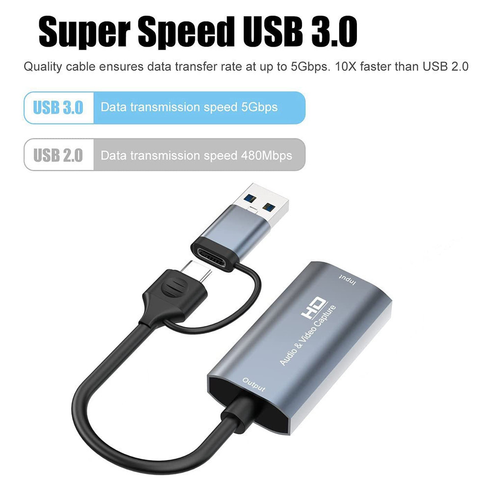 Video Capture Card HDMI to USB 1080P Game Capture Card Recorder Device for Gaming Teaching Conference Broadcasting