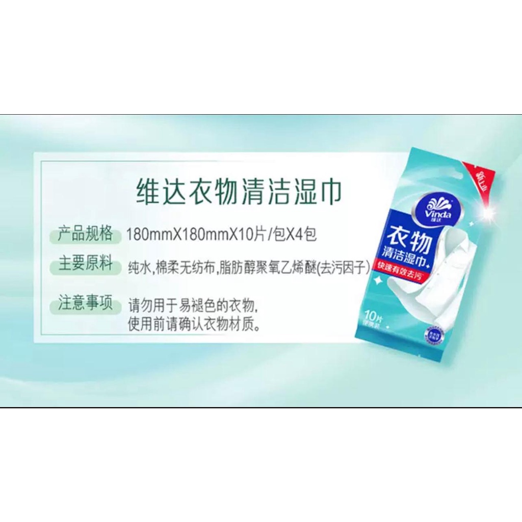 Vinda down jacket cleaning wipes water-free laundry wipes 10 pieces 4 packs of independent portable packaging