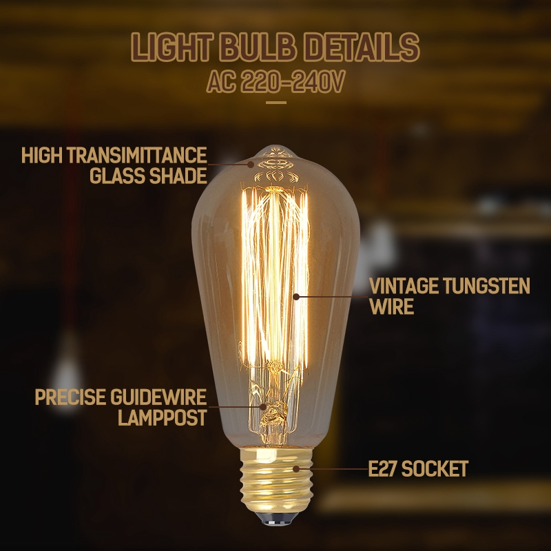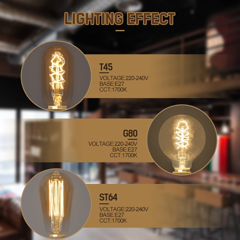 Vintage Edison Bulb E27 ST64 T45 G80 40W 220V LED Lamp Incandescent Light Rope Lamp Holder E27