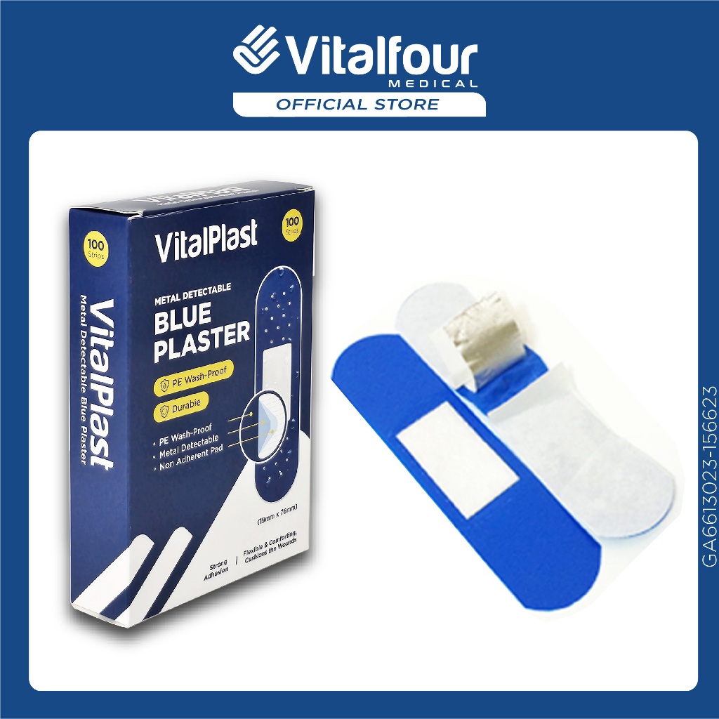 VitalFour VitalPlast PE Blue Plaster METAL DETECTABLE Waterproof Plaster Plaster Bandage (100's/Box)