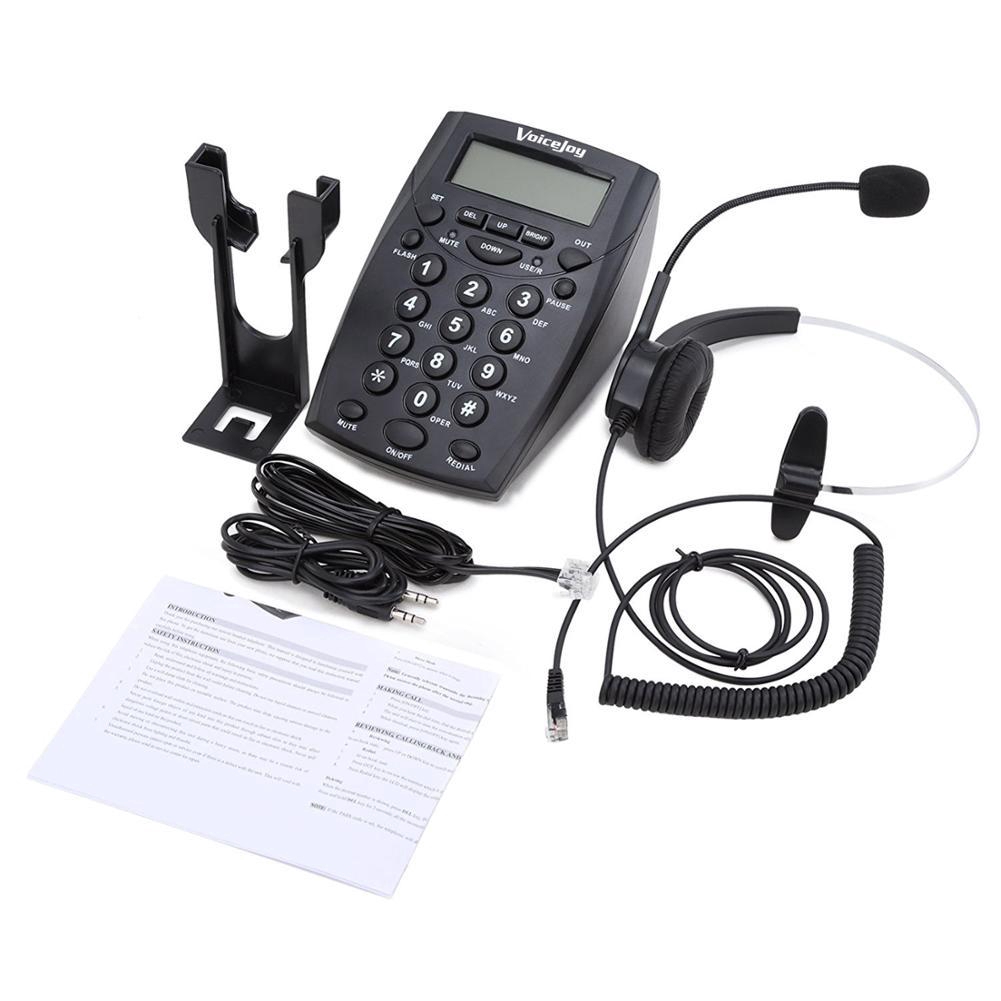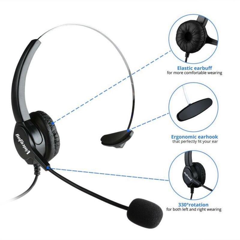 VoiceJoy Headset Telephone Desk Phone Headset Hands-free Call Center Noise Cancellation Monaural with Green Backlight
