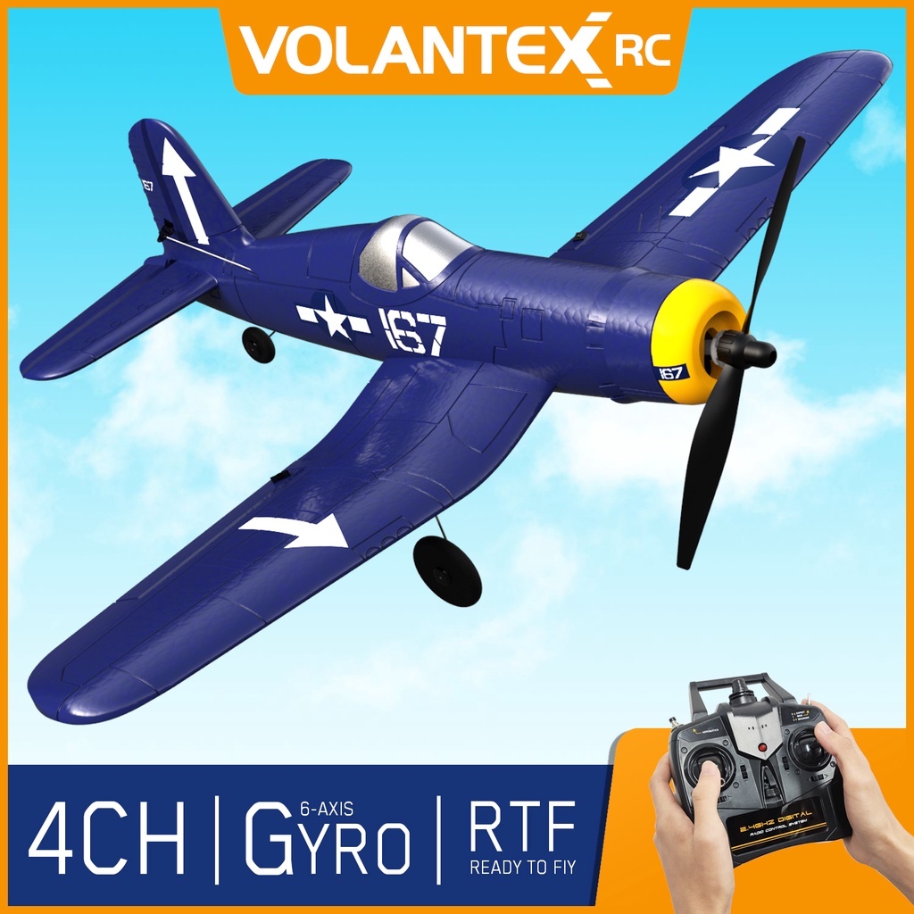 VOLANTEXRC RC Plane F4U Corsair 2.4Ghz 4CH 400mm Wingspan Fixed Wing EPP Foam One Key Aerobatic airplane control 761-8 RTF
