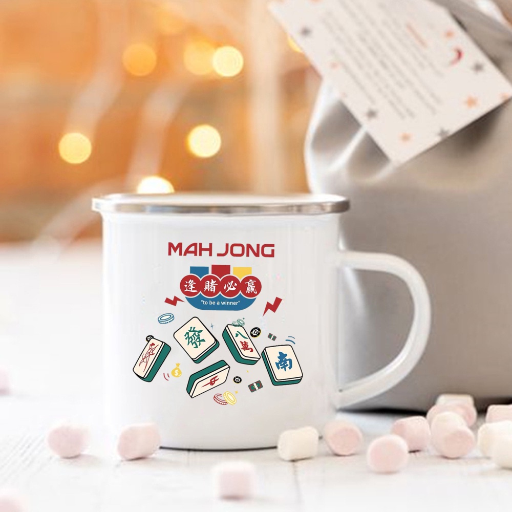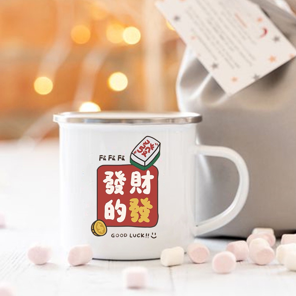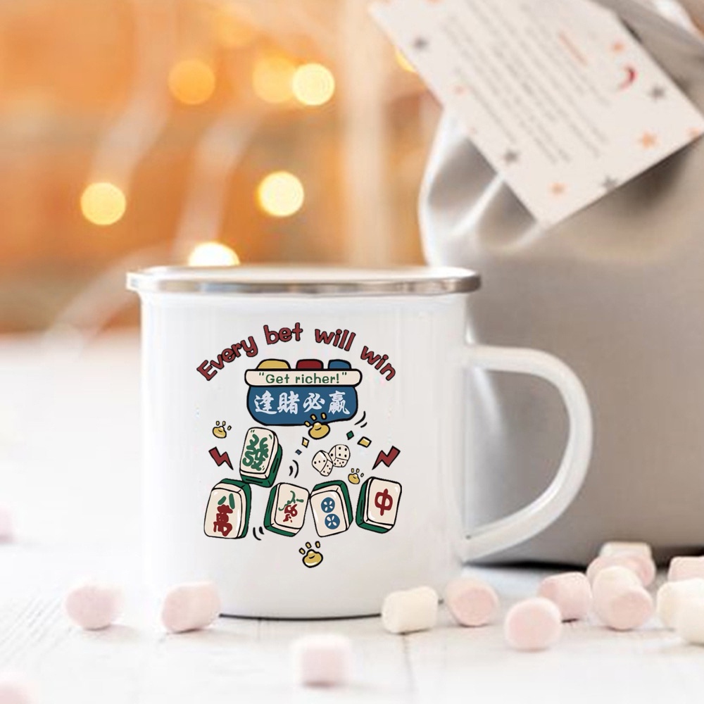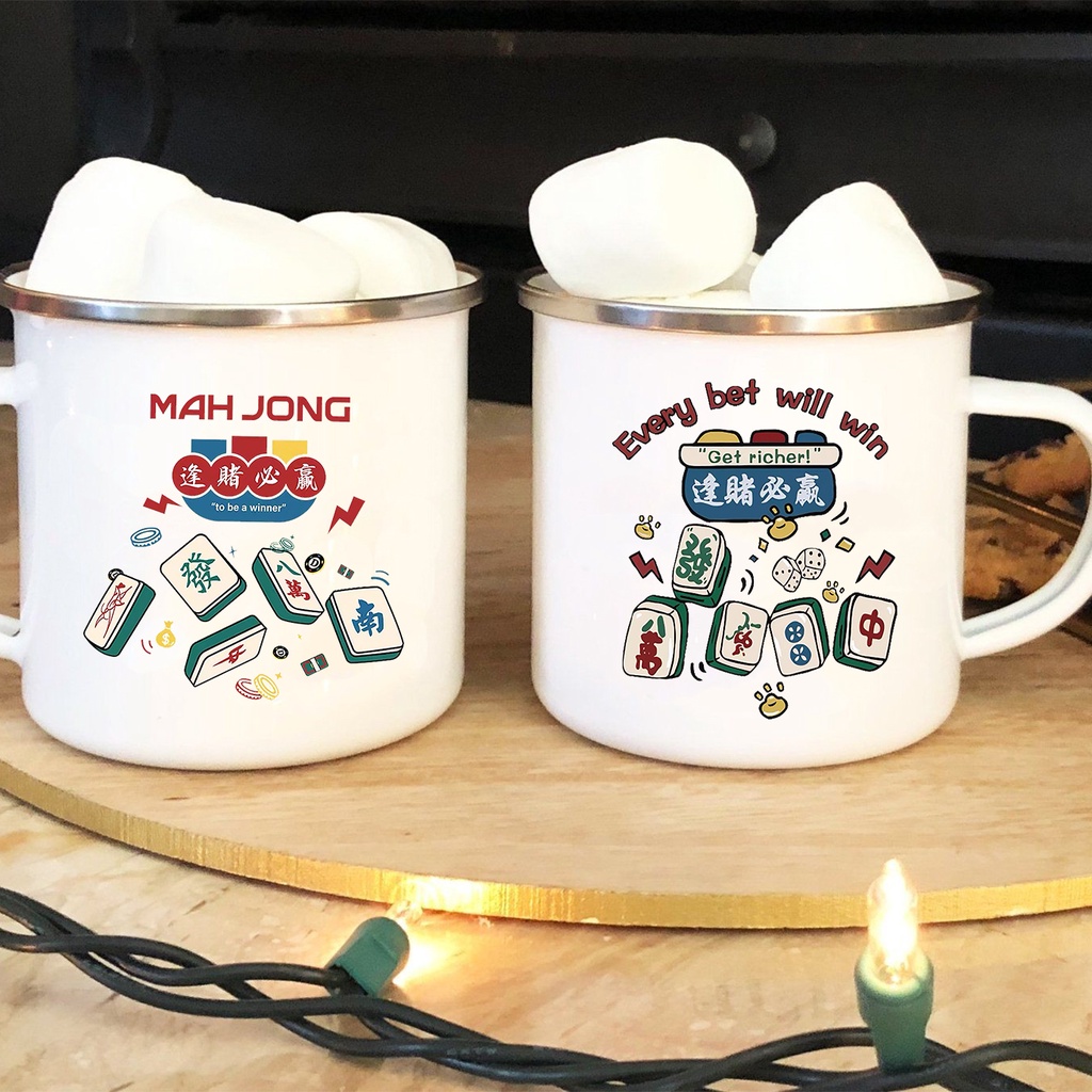 2023 New Year Chinese Mahjong Fortune Print Enamel Coffee Cup Gift Mug New Year Party Decoration Enamel Cup New Year Gift