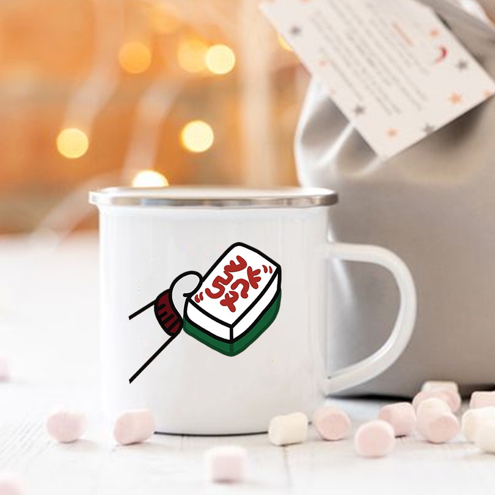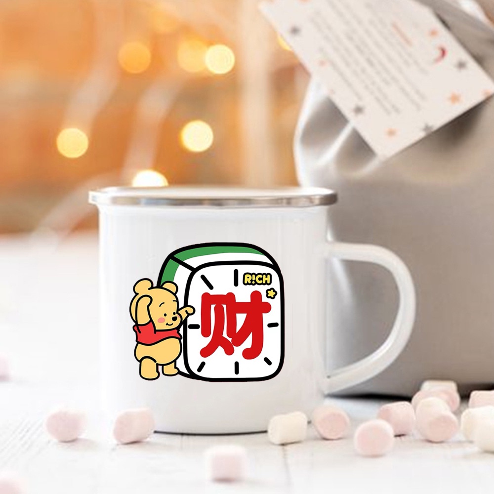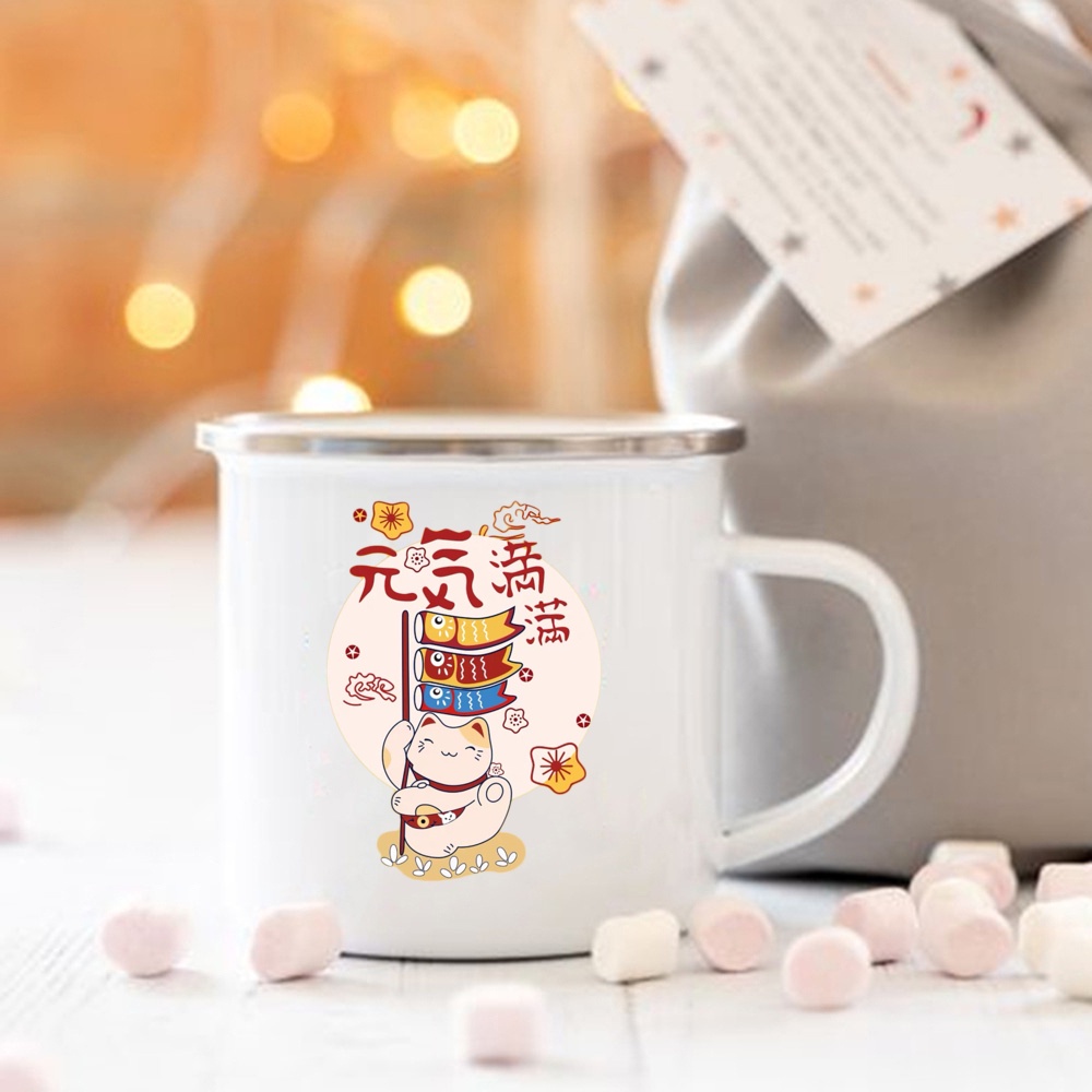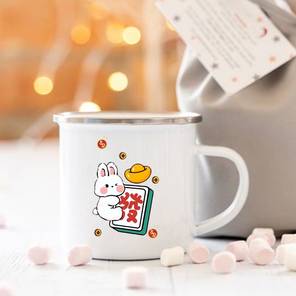 2023 New Year Chinese Mahjong Fortune Print Enamel Coffee Cup Gift Mug New Year Party Decoration Enamel Cup New Year Gift