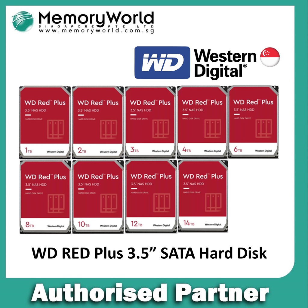 WD Red Plus NAS 3.5" Hard Disk, 2TB / 4TB / 8TB / 10TBSingapore Local 3 Years Warranty . WD