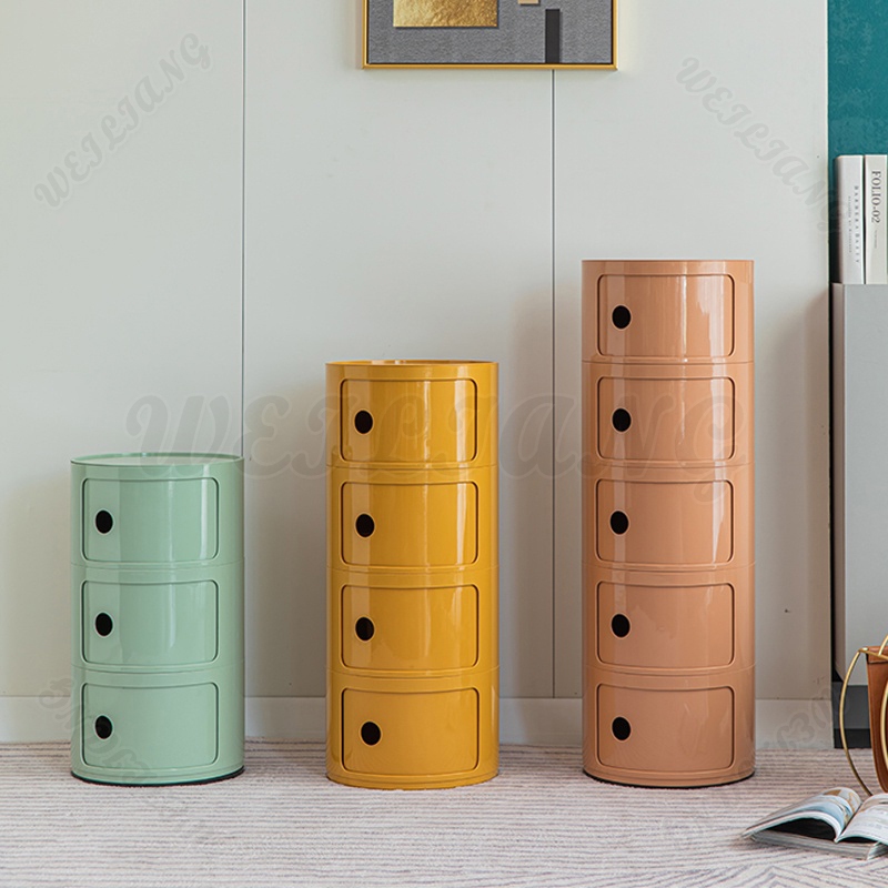 WEILIANG Northern Europe Storage Cabinet Round Nightstand Drawers Bedside Table Plastic Modern Circular Desk