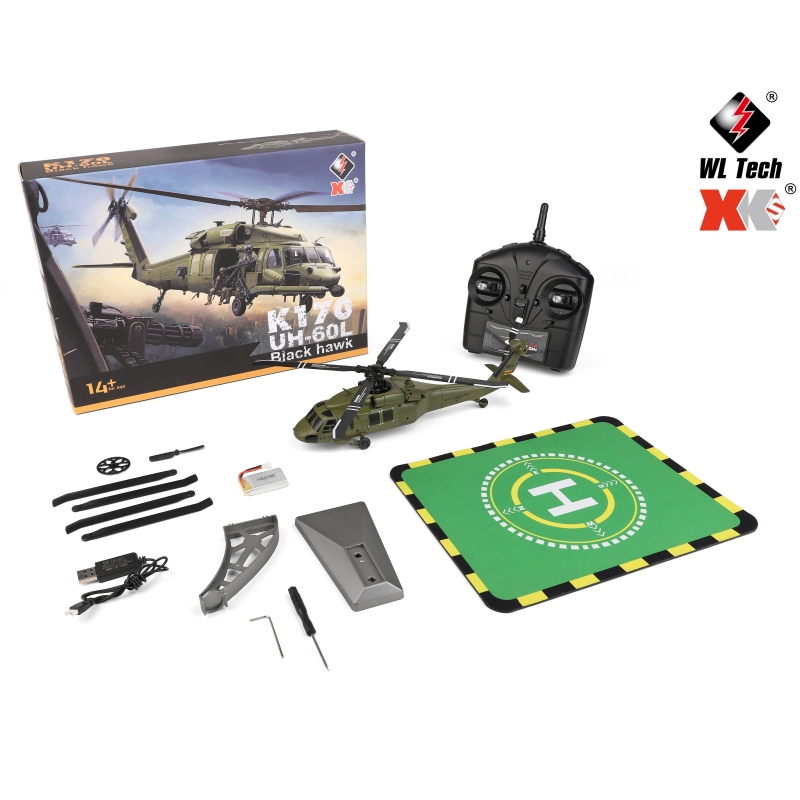 WLtoys K170 Black Hawk UH60L 4CH remote control scale helicopter 4 propellers brushless air pressure fixed height model aircraft