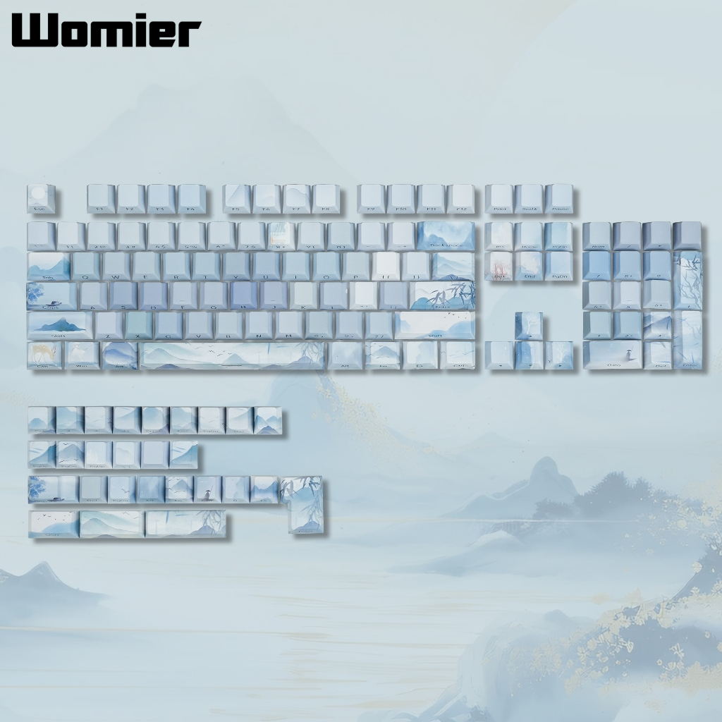 WOMIER 130 Keys Blue Lake Side Print PBT Keycap Backlit RGB Cherry Profile Dye-Sub Key Caps For Cherry MX Gamer Mechanical Keyboard