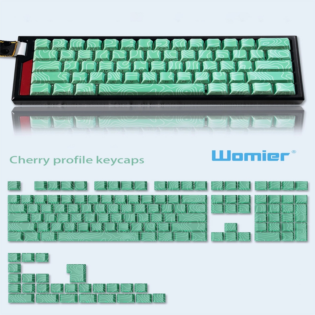 WOMIER 134 Keys Black Line Topographic Vision Keycaps Shine Through PBT Custom Key Caps Set for Gateron MX Gamer Mechanical Keyboard