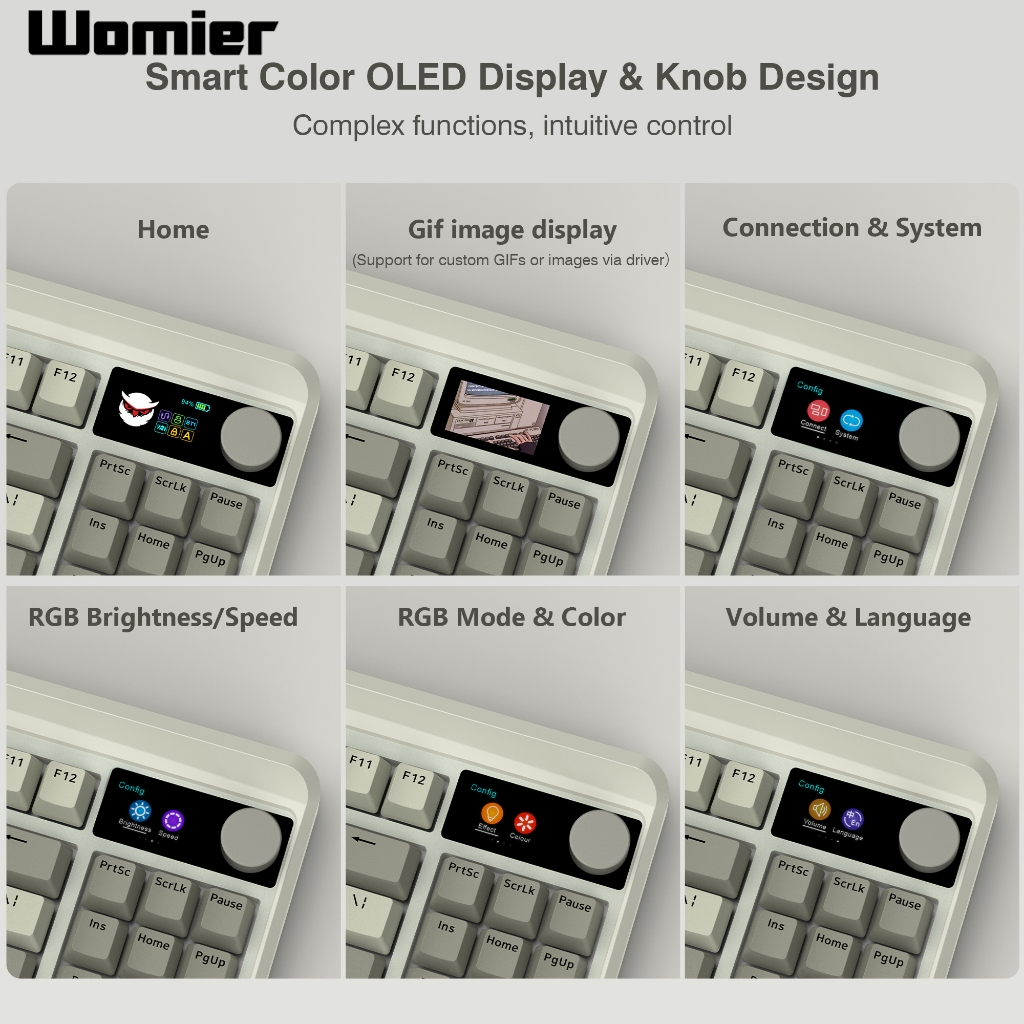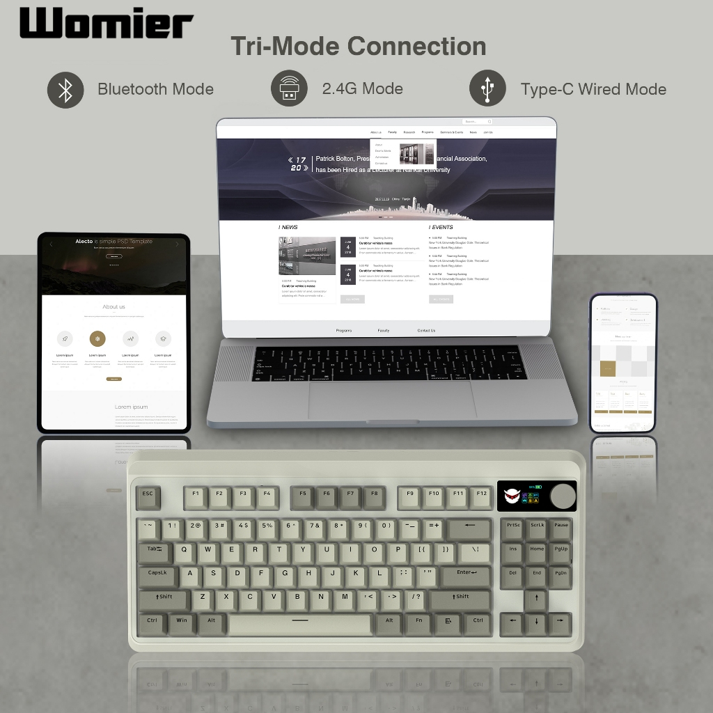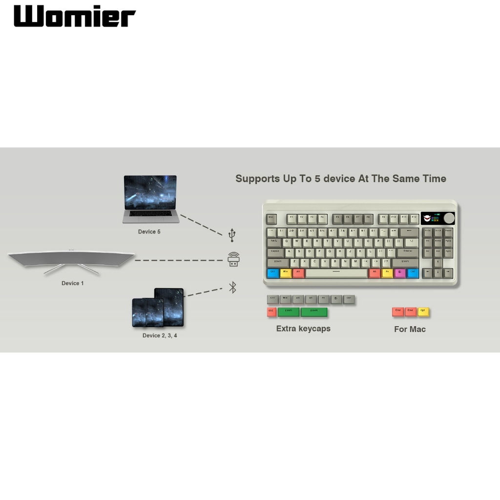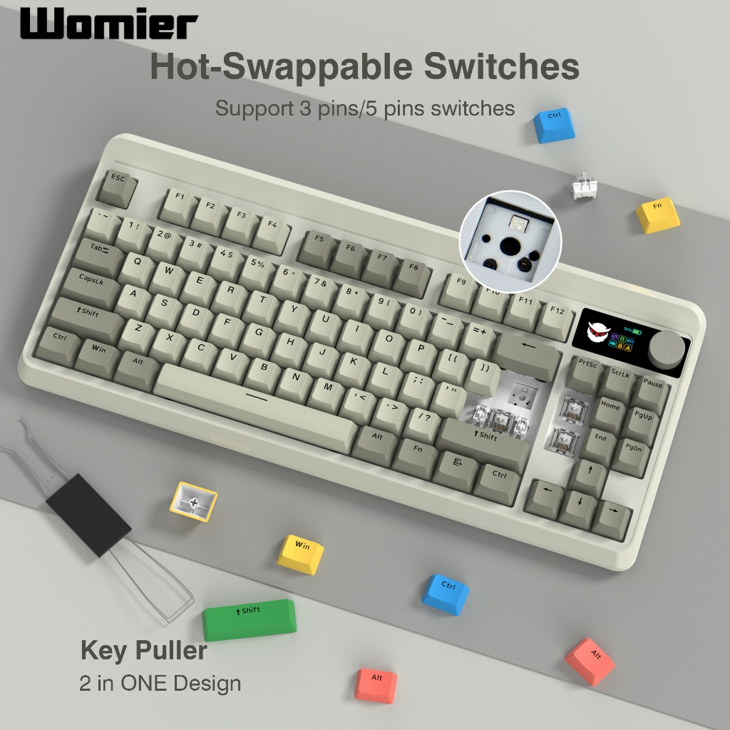 WOMIER Mechanical Keyboard, M87 Pro 3 Mode RGB Backlit Hotswap Wireless Keyboard Support Bluetooth/2.4G/Wire Connection, Mechanical Gaming Keyboard
