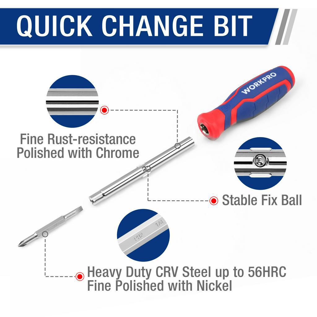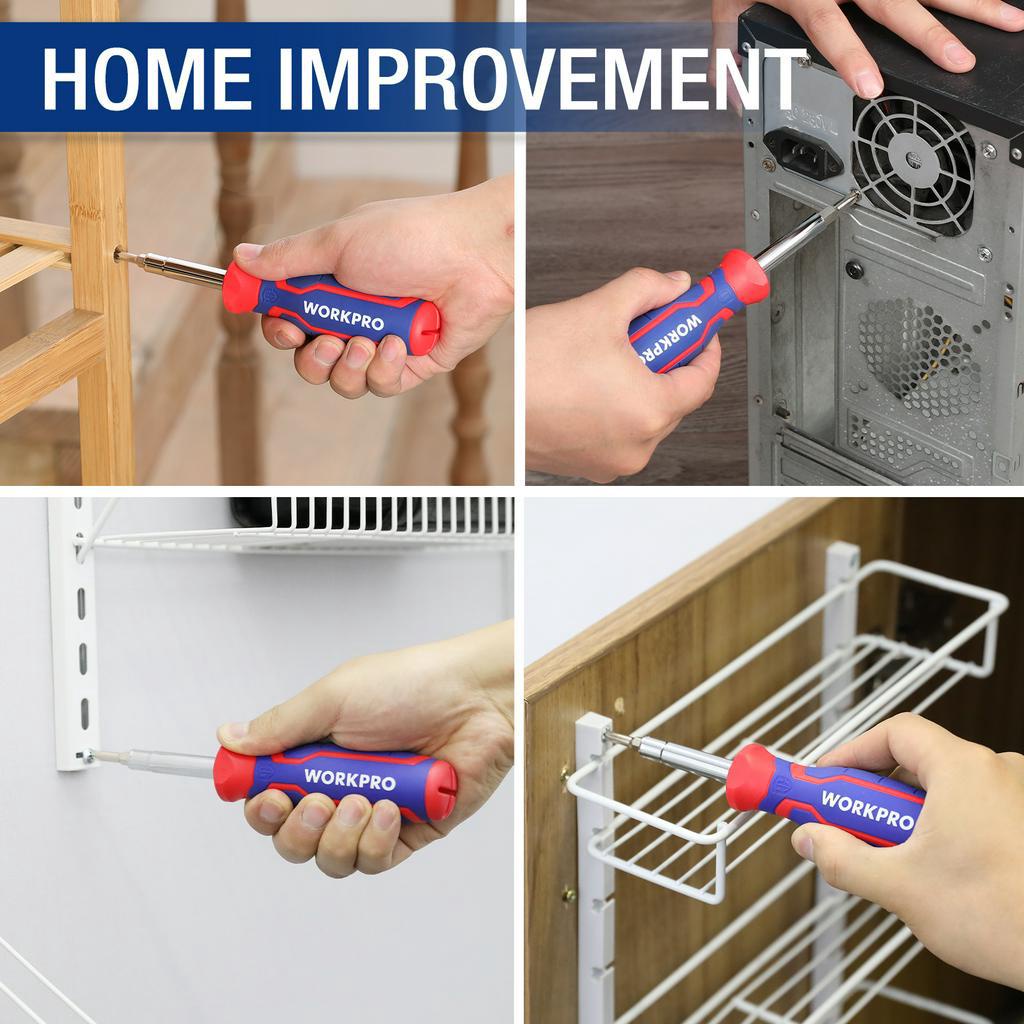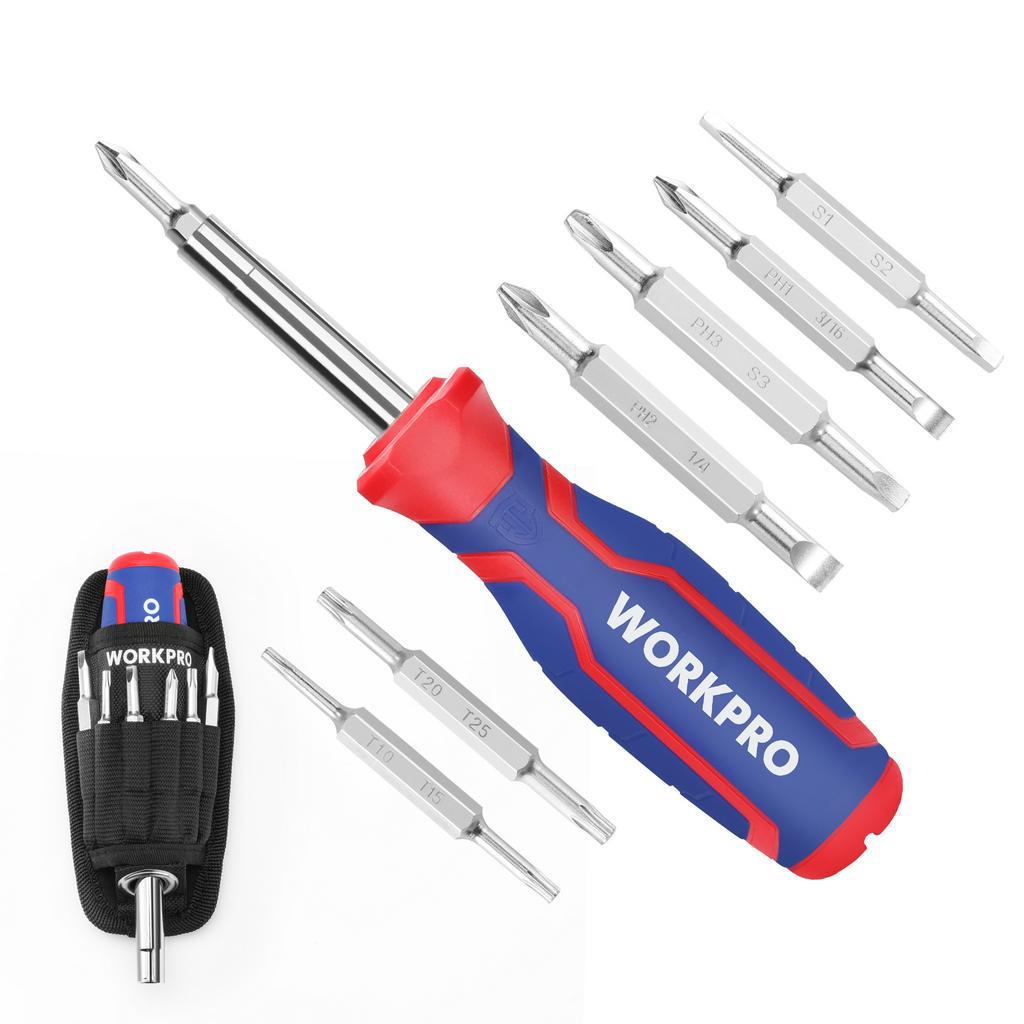 WORKPRO 14 in 1 Multi-bit Ratcheting Screwdriver Set Tool Portable Multi-purpose Screw Driver Slotted/Torx/Square