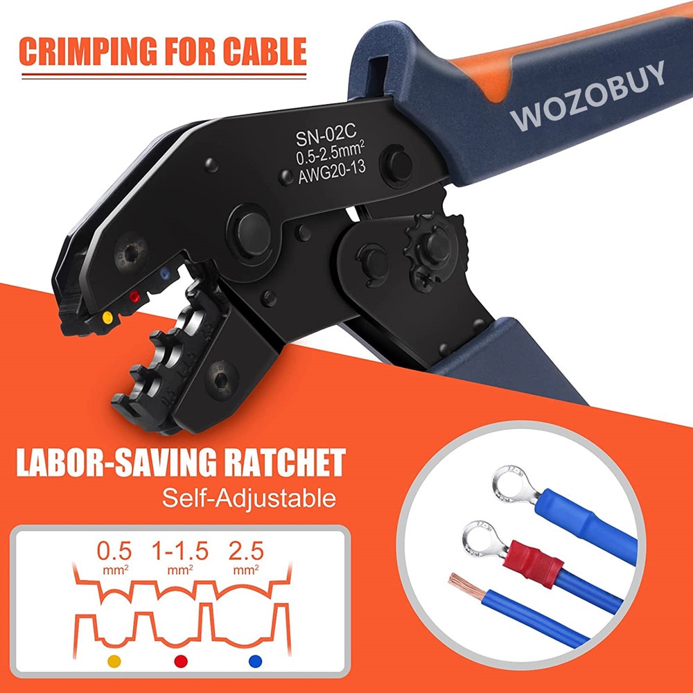 WOZOBUY Crimping Pliers Set Wire Crimper Crimping Tools Ratcheting SN-02C Insulation Terminals Electrical Clamp Min Tools