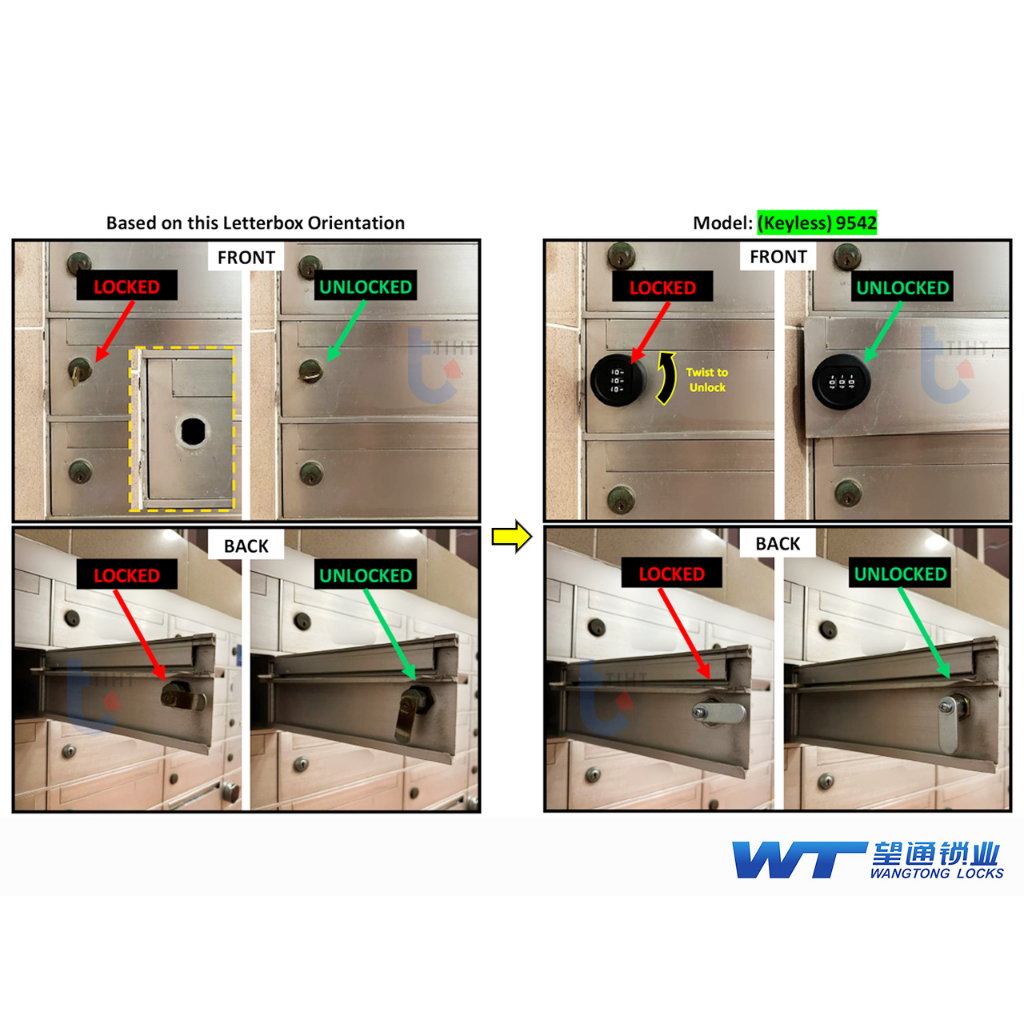 WT Key/Keyless Combination Lock Cam Lock Letterbox Lock Mailbox Lock HDB Mail Box