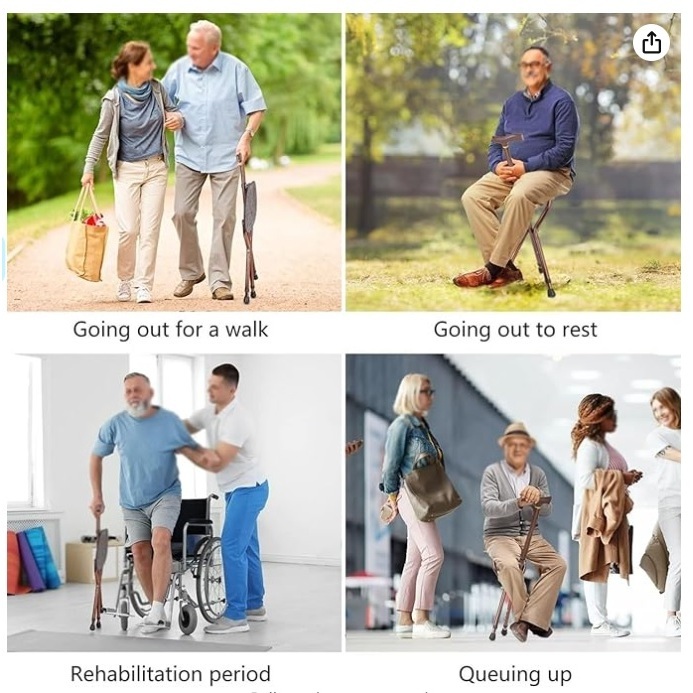 Walking Cane with Seat, Stainless steels, Cane Chair Stool, Portable Walking Stick for Seniors Elderly, Suitable for The