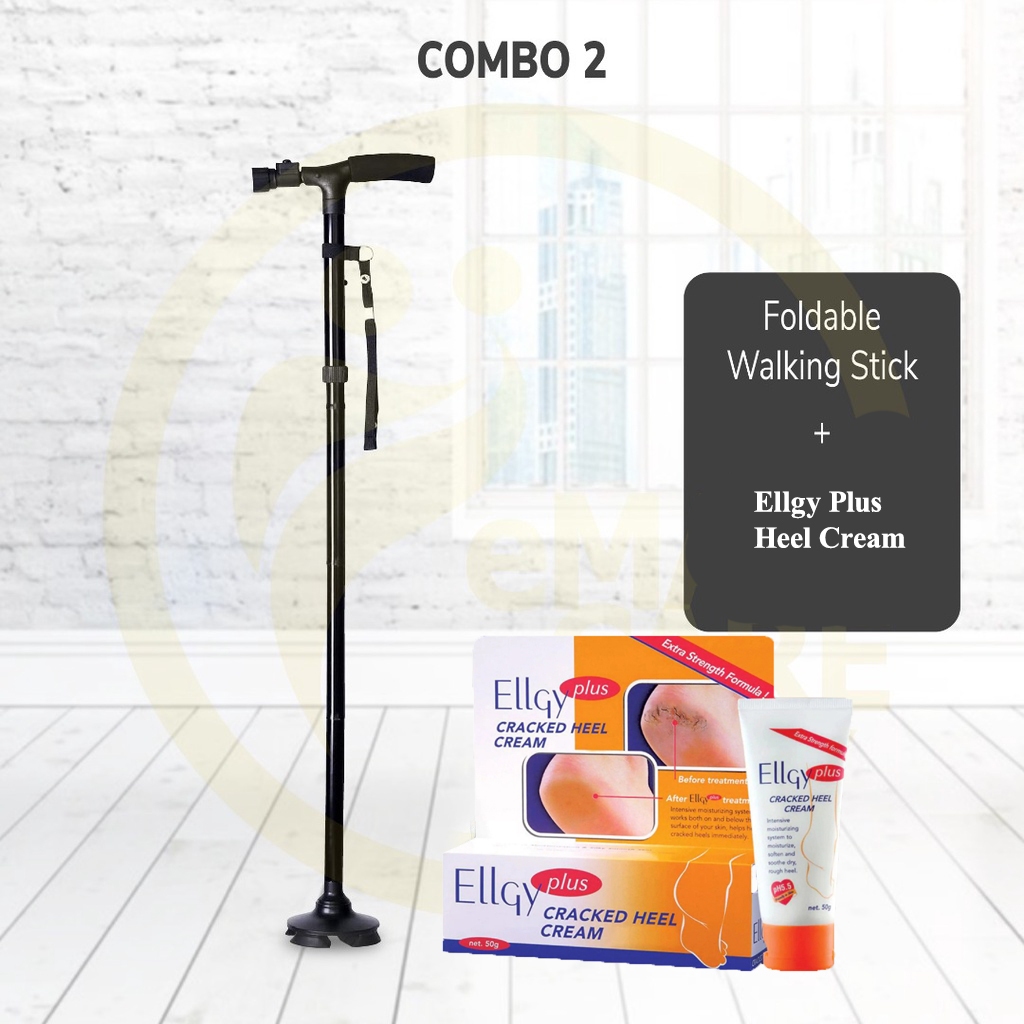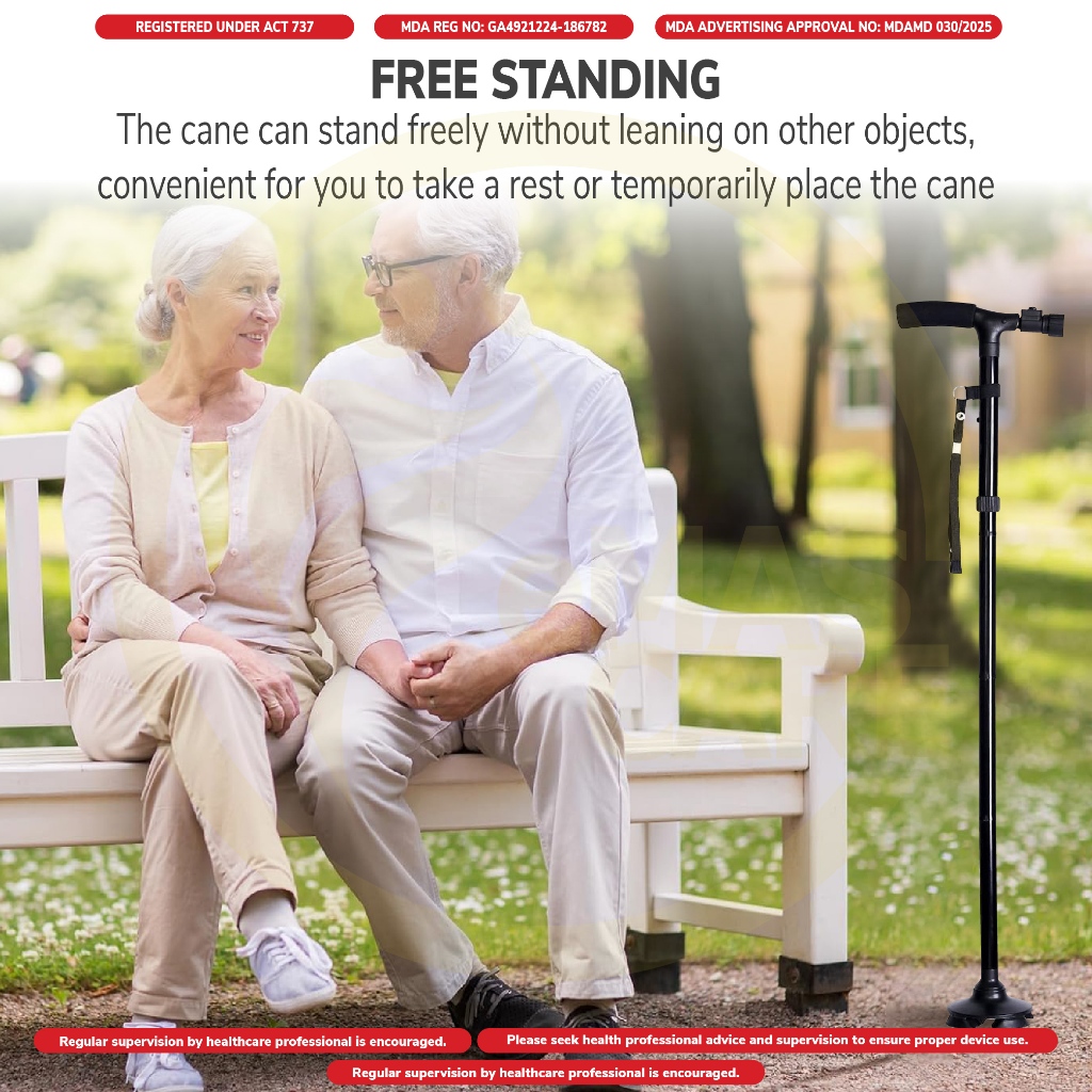 Walking Stick Foldable Adjust Height Tongkat Cane Pivot LED Trusty Crutch Cane Magic Tongkat Lipat Bantu Jalan (Black)