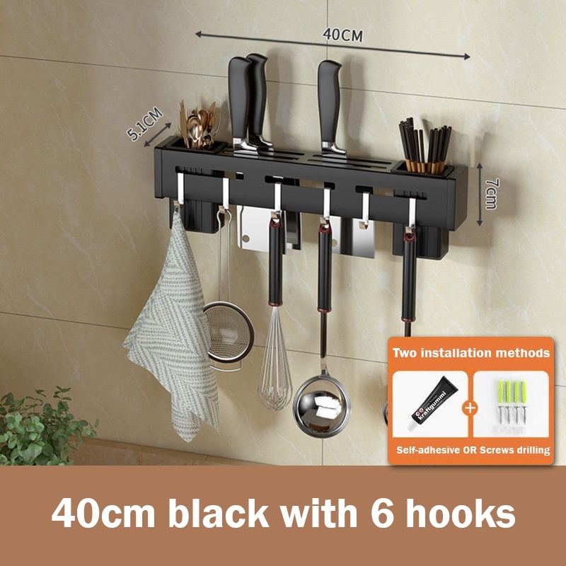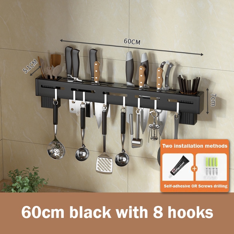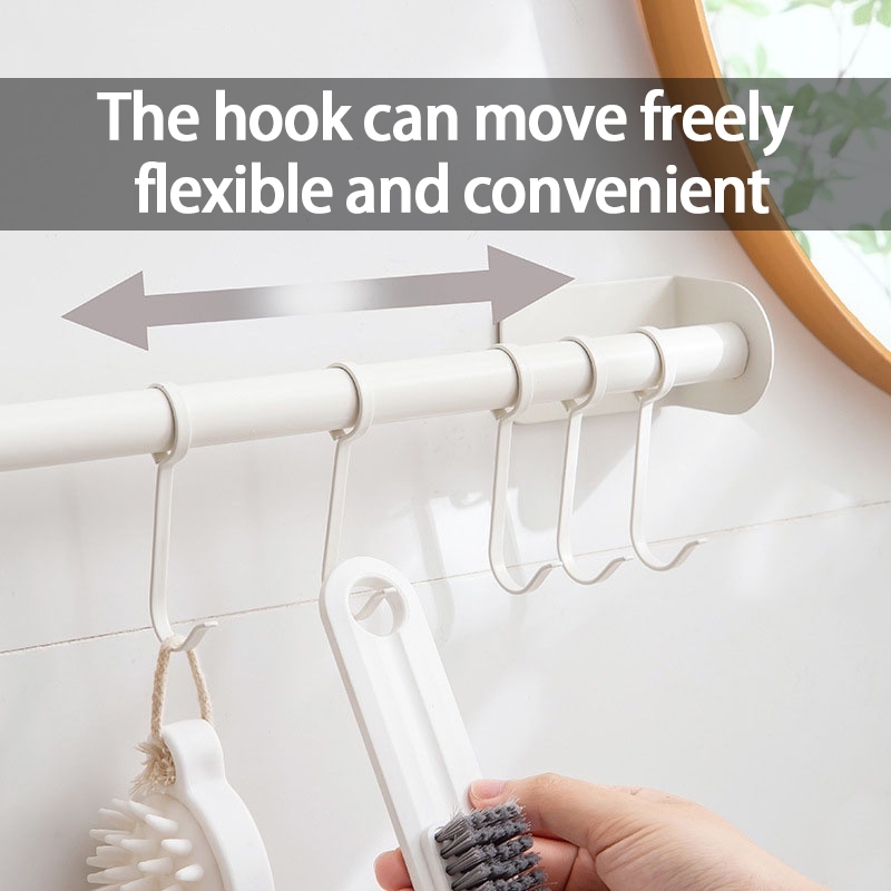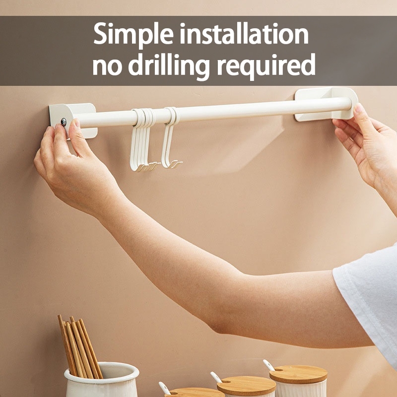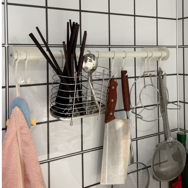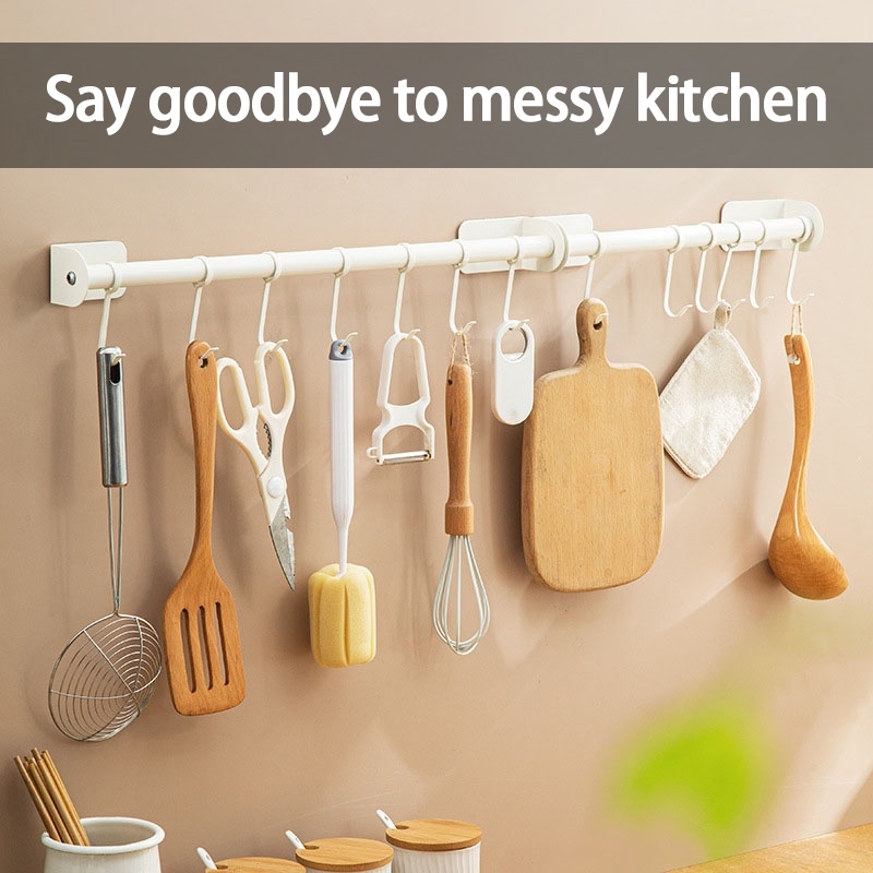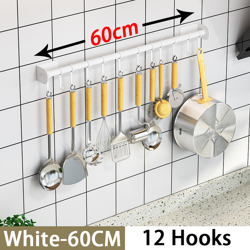 Wall Hanging kitchen Organizer 60CM 12 Movable Hooks Hanging Rack Kitchen Stainless Steel Storage Rack Free Punching