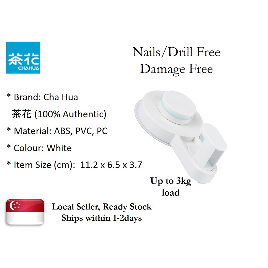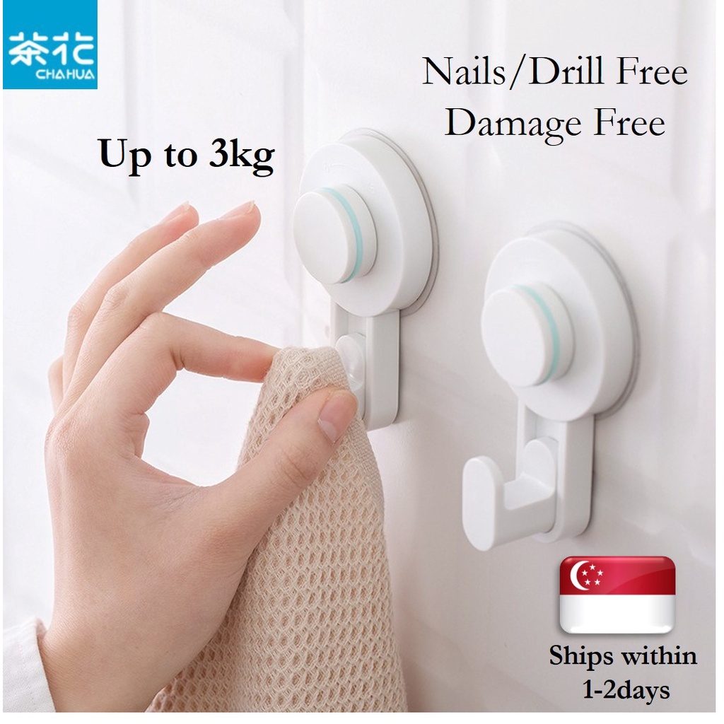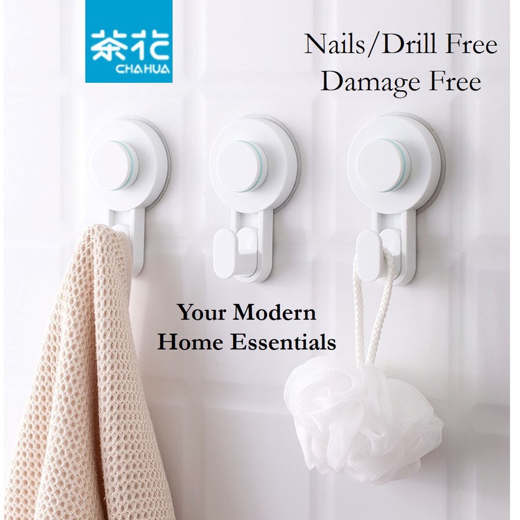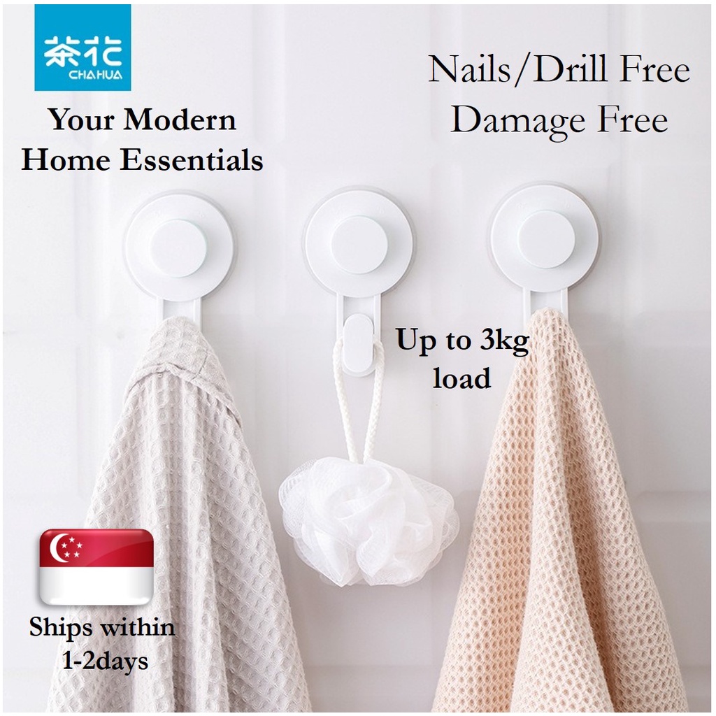 Wall Mount Hook, Adhesive Hook (Nails/Drills Free, Damage Free, Removable, Durable up to 3kg, Multi-Purpose, ChaHua)