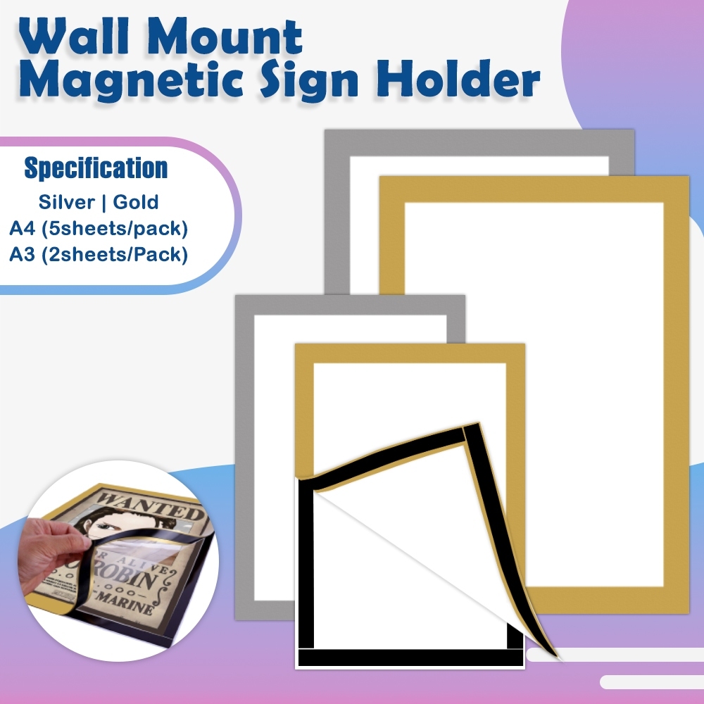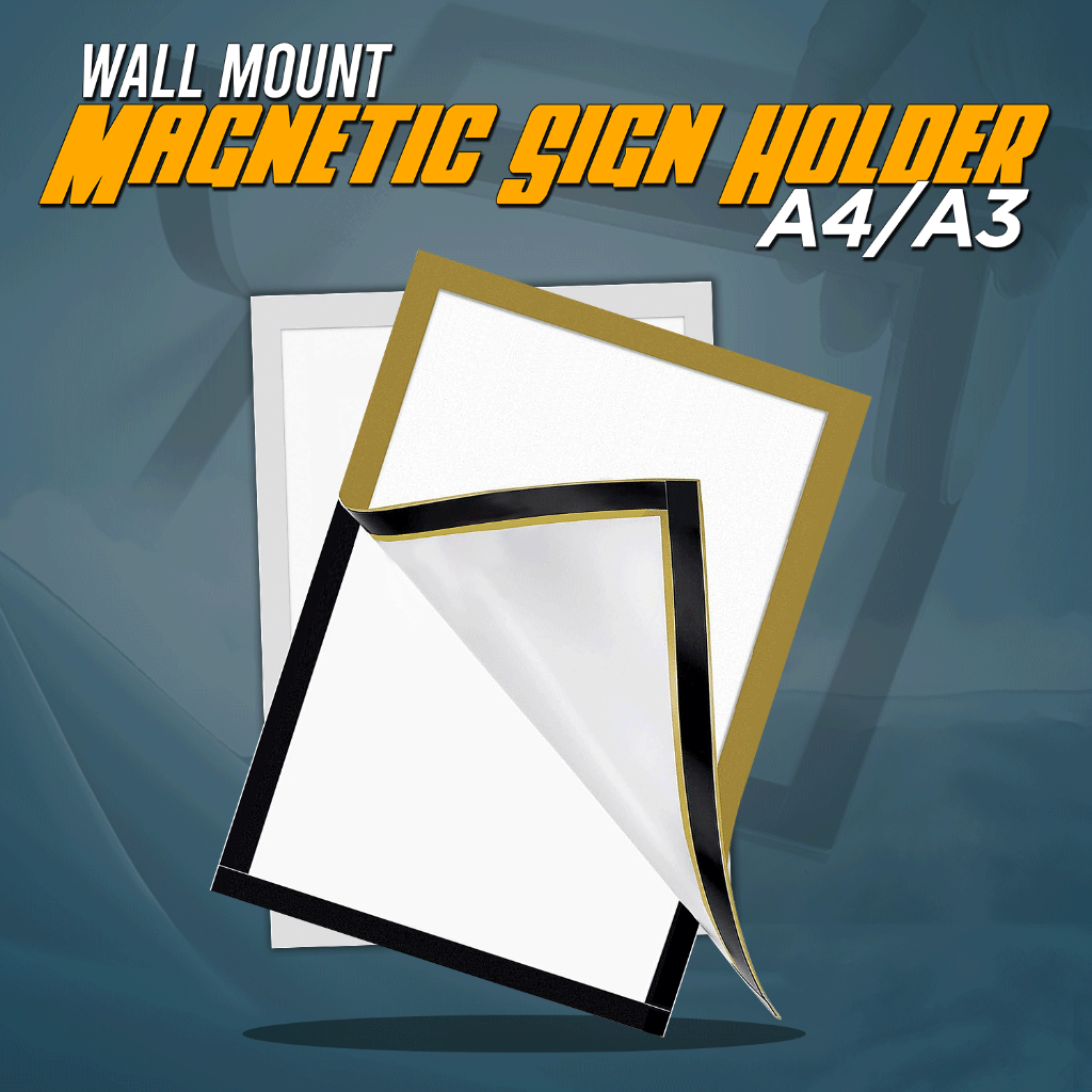 Wall Mount Magnetic Sign Holder A4 A3 Size Gold or Silver Magnetic Wall Sign Holder
