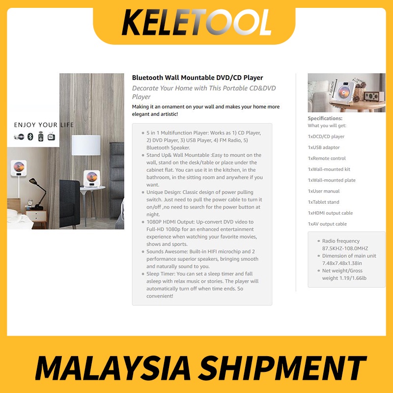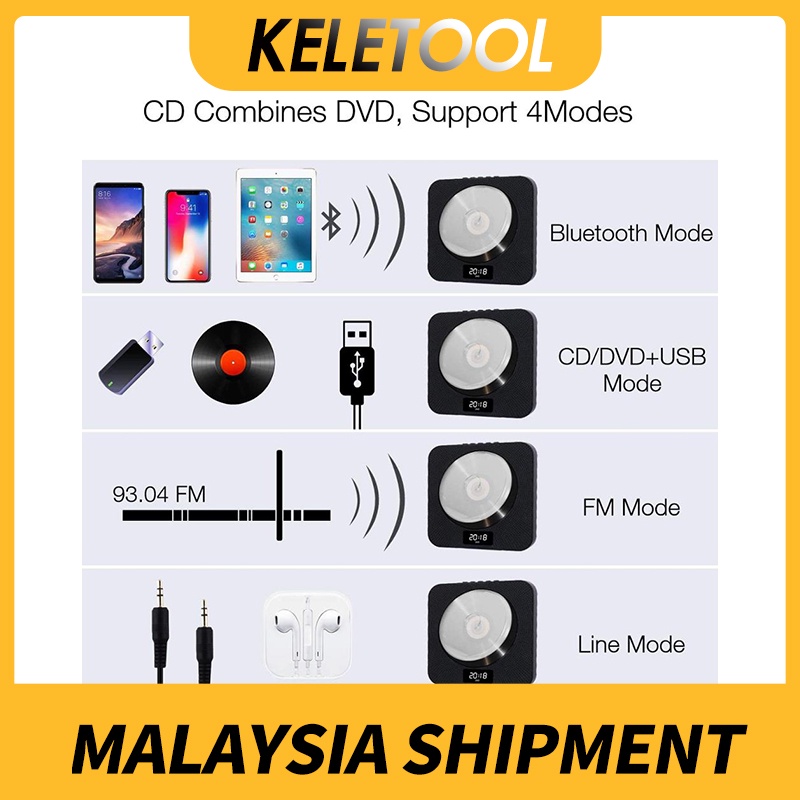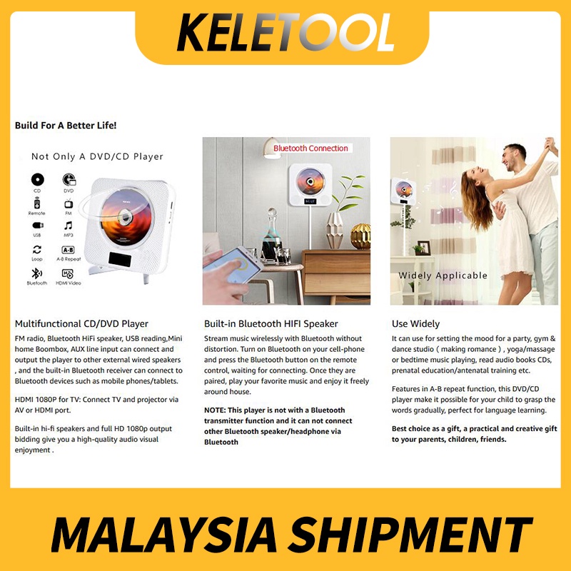 Wall Mounted CD Player Home HD DVD Player Music Player Bluetooth USB MP3 Surround Stereo Sound Remote Control FM Radio