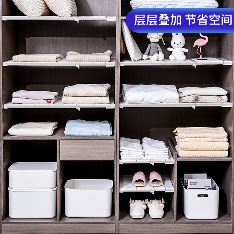 Wardrobe Partition Layered Rack Punch-Free Wardrobe Storage Rack Layered Partitioned Retractable Storage Rack Cabinet Partition Board/Plastic Sheet Shelving Accessory / kitchen