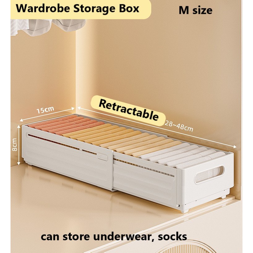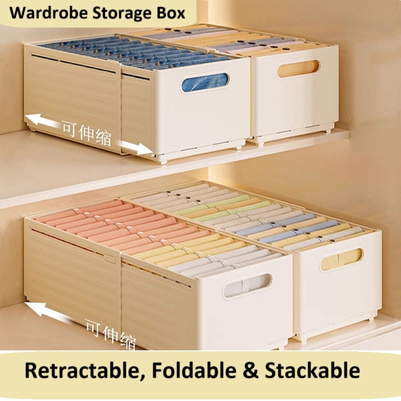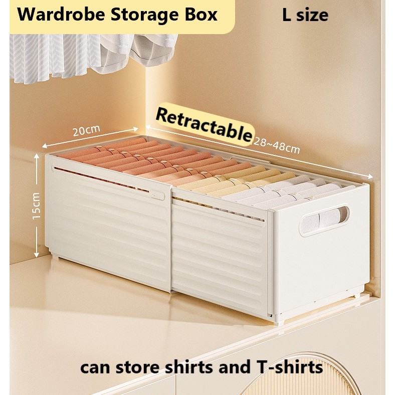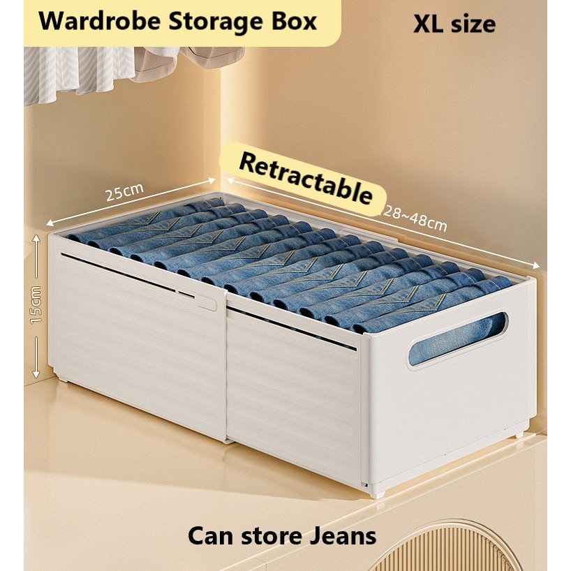 Retractable Wardrobe Storage Box for Clothes Bed Sheet Foldable Stackable Plastic Wardrobe Organizer White