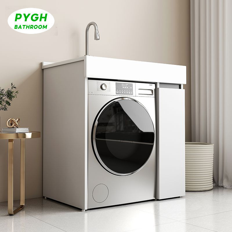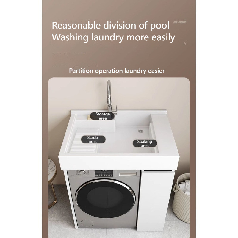 Washing Cabinet Honeycomb Aluminum Washing Machine Companion Combination Cabinet Integrated Basin With Washboard Quartz Stone Basin