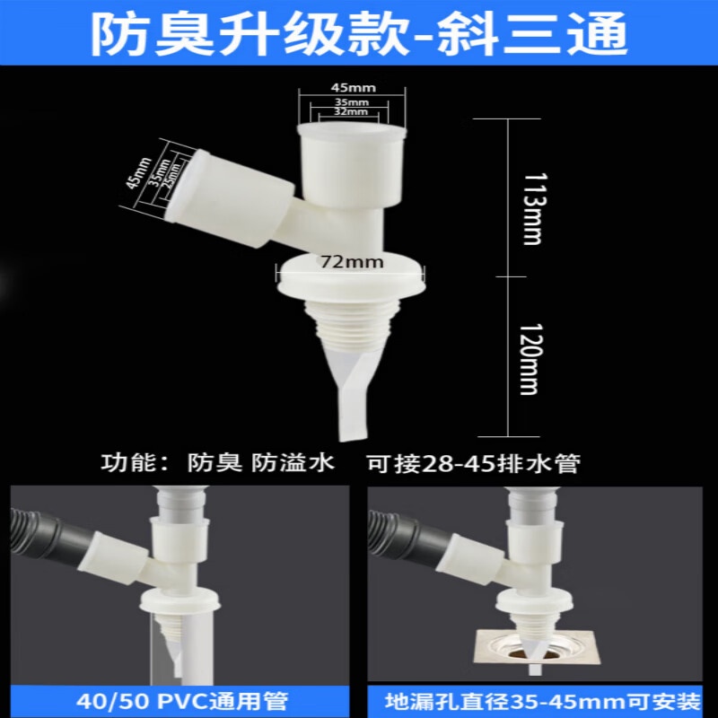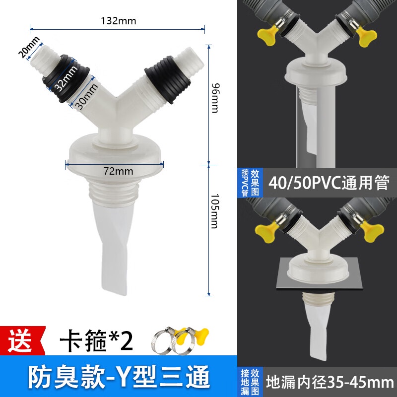 Washing Machine Drain-Pipe Deodorant Three-Way Basin Downcomer Floor Drain Special Connectors Pvc Pipe Y-Type Fork Three-Head