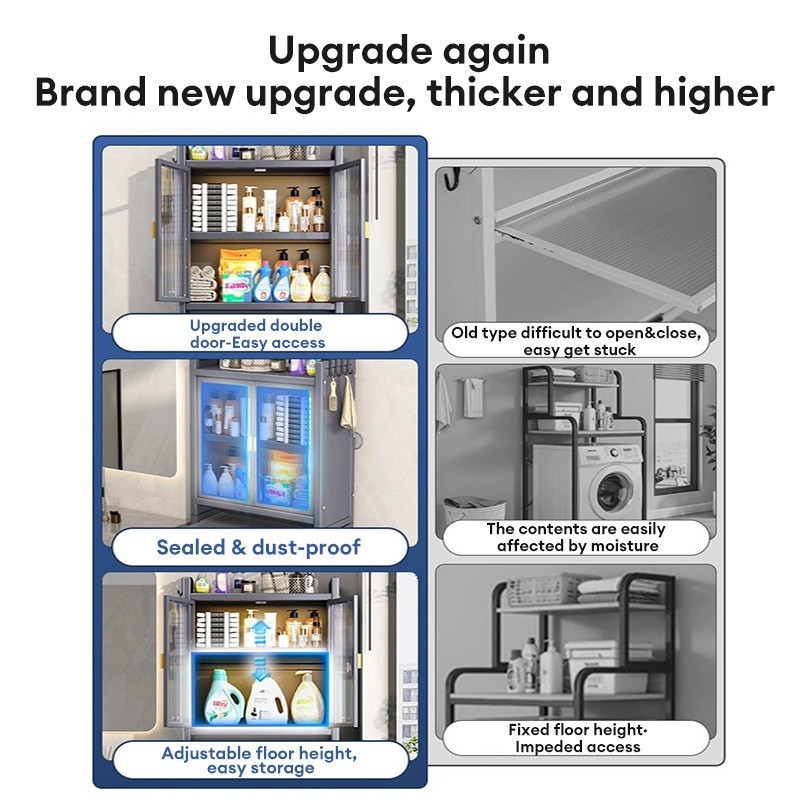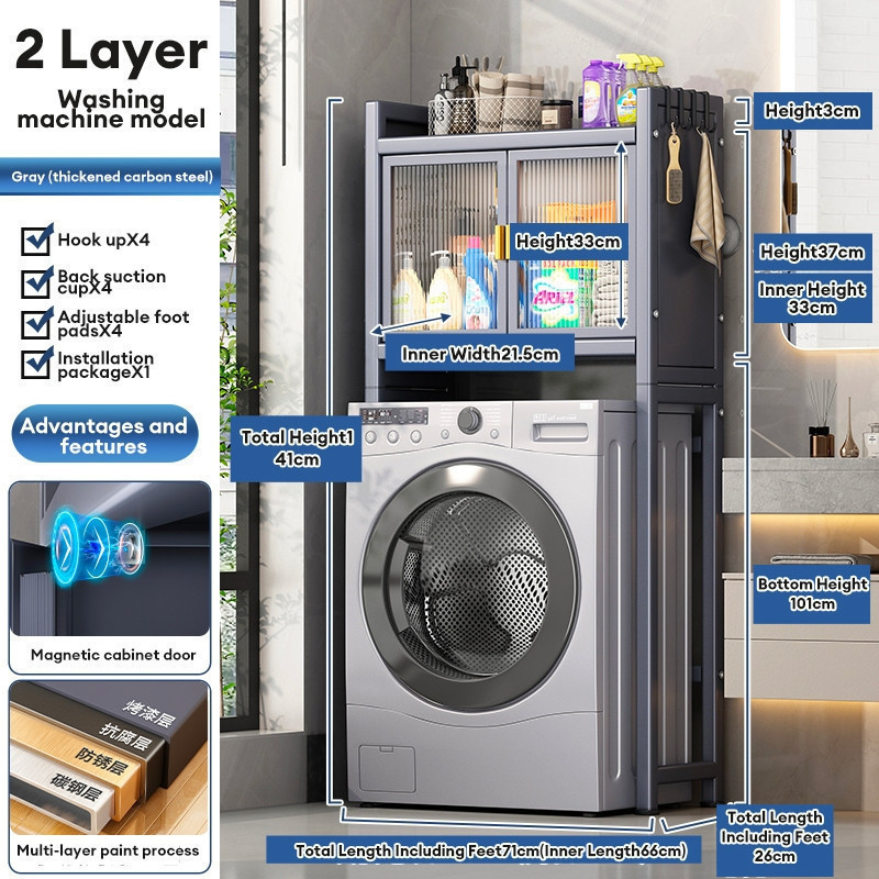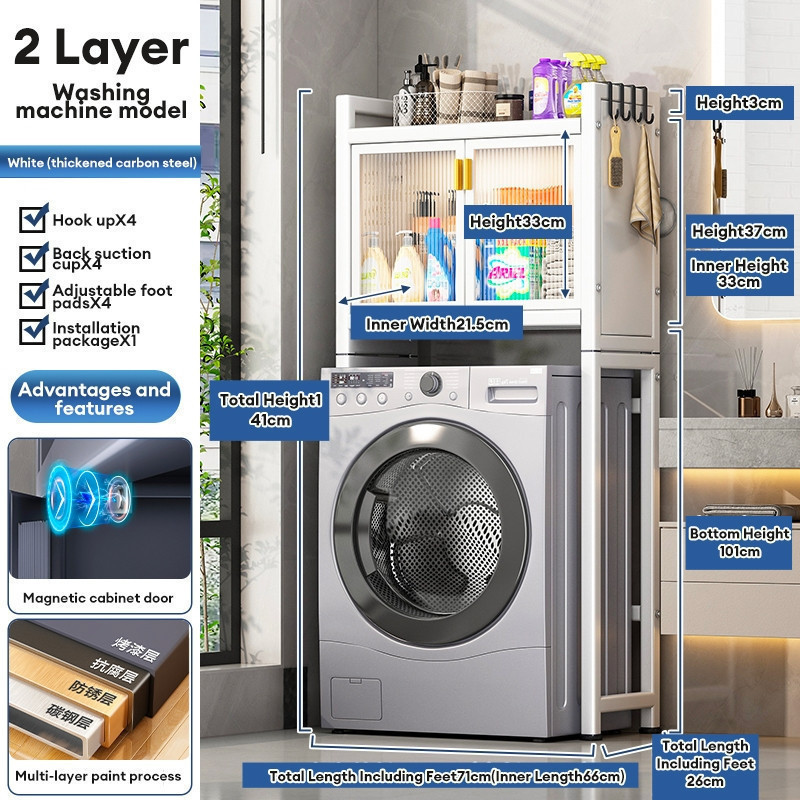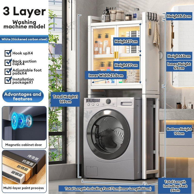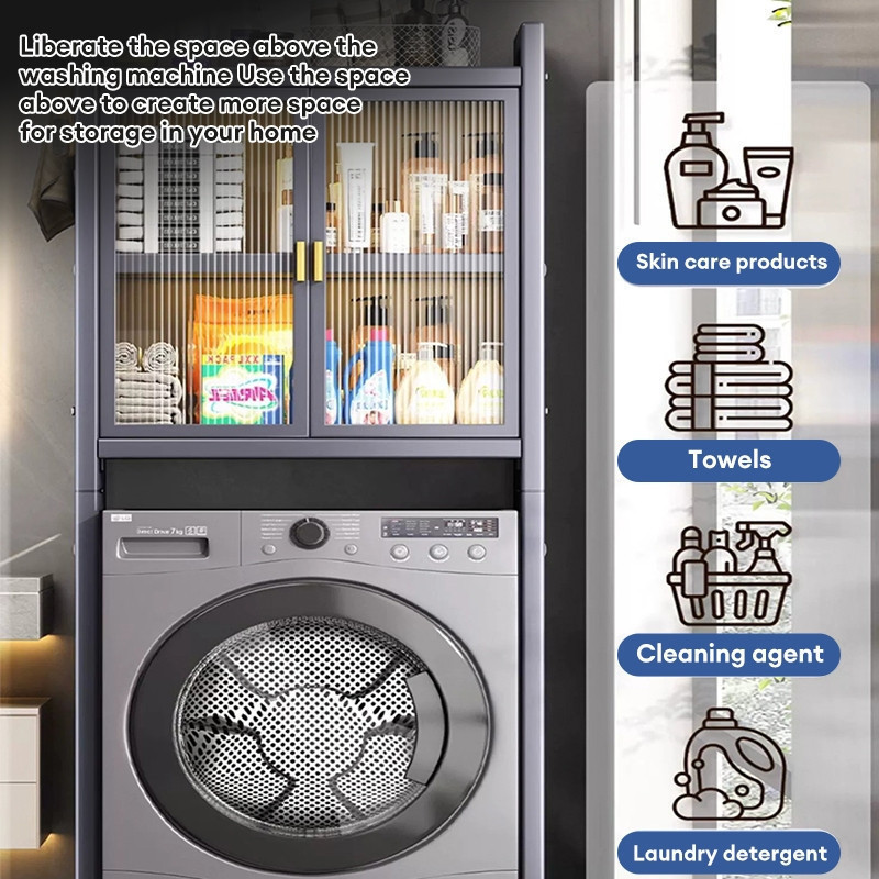 Washing Machine Rack Toilet Rack Bathroom Shelf Bathroom Storage Cabinet With Door Dust-proof Locker Detergent Storage