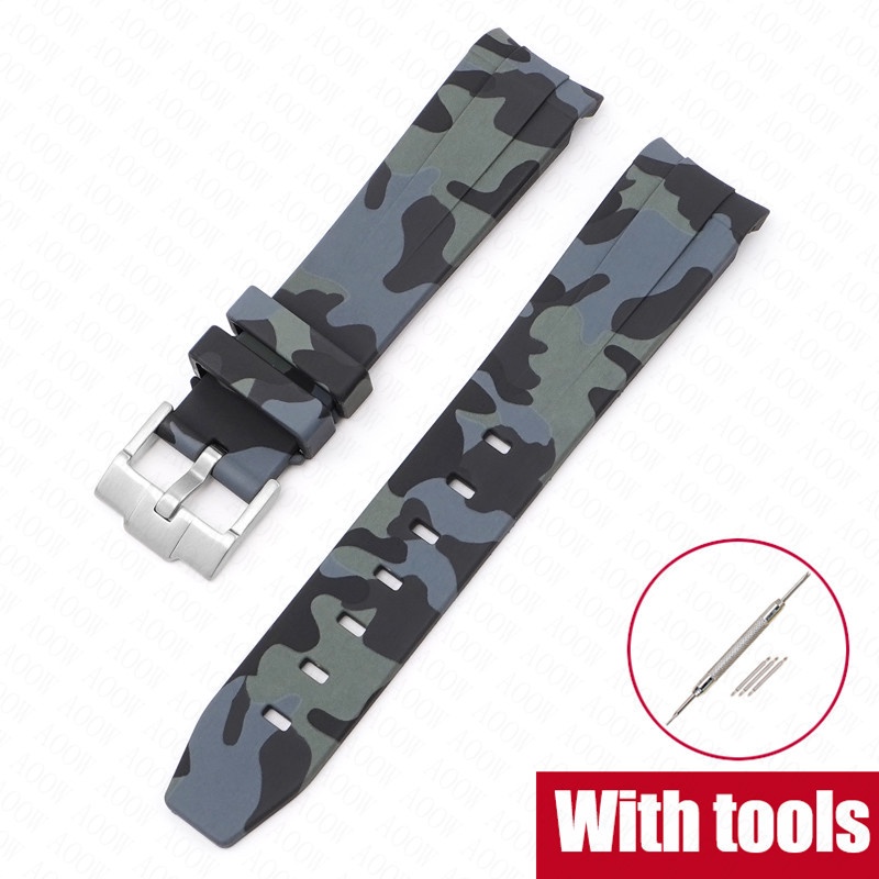 Watch Band for Omega X Swatch MoonSwatch 20mm Curved End Rubber Silicone Bracelet Women Men Soft Sport Camouflage Strap Accessories