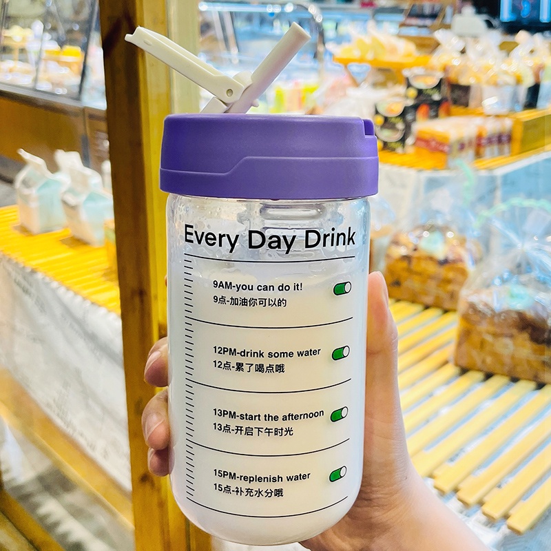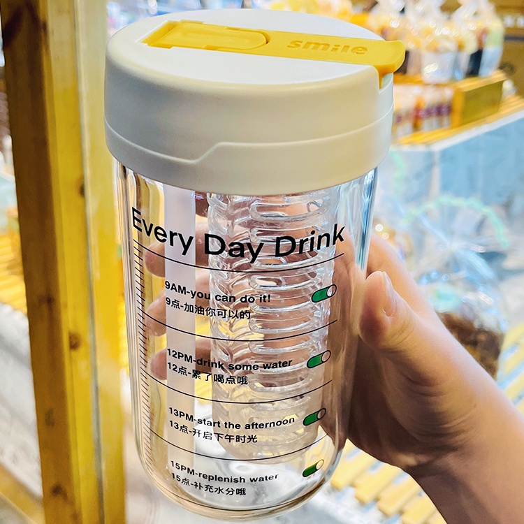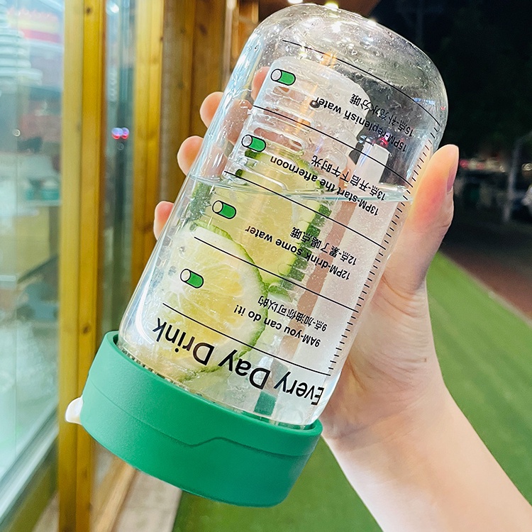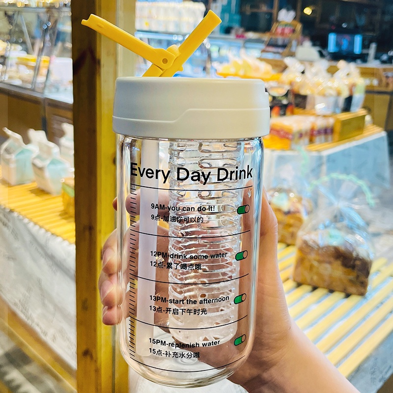 Water Bottle Time Scale Reminder Food Grade Tumbler Fruit Infuser Water Bottle Large Capacity Water Bottle with straw INS cups