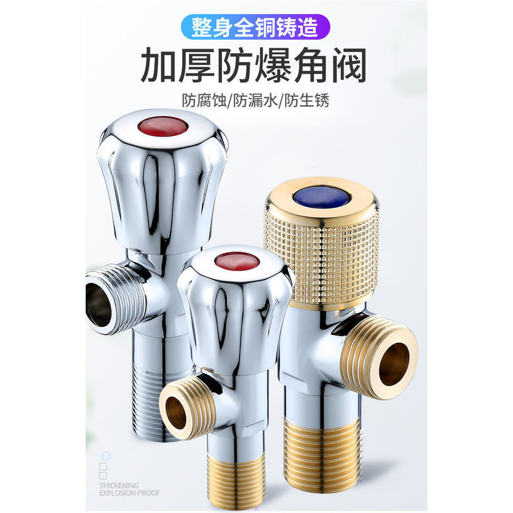 Water Heater Inlet Valve Copper Thickened Triangle Valve Cold and Hot Water Valve Dual-Purpose One-Switch Two-Way Water Stop Valve Angle Valve Pure Copper