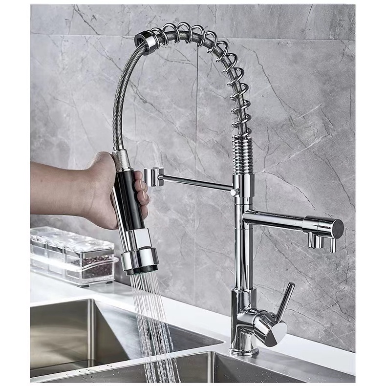 Water tap Kitchen Mixer Tap Spring Pull Out High Quality Hot and cold water Faucet comes with hose Matt Black and Silver