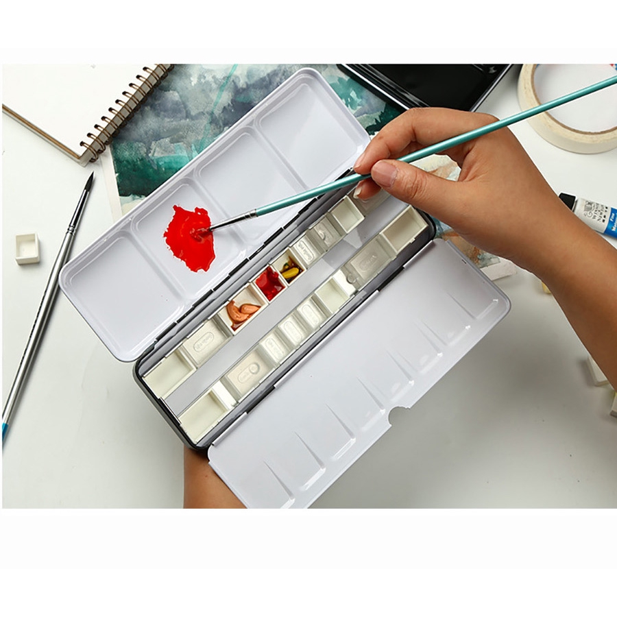 Watercolor Paints Tins Box Palette Painting Storage Paint Tray Palette Paint Box with Full Pans or Half Pans For Arts