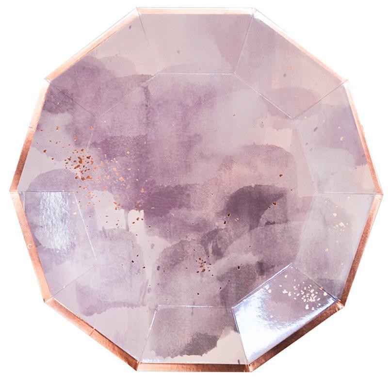Watercolor Purple Disposable plates cups cutlery for birthday party wedding event