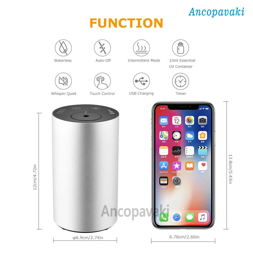 Waterless Diffuser for Essential Oil, Nebulizer Diffuser with Battery Operated Portable Car Diffuser Aluminum Aroma Nebulizer Waterless Wireless Heatless USB Nebulising Diffuser