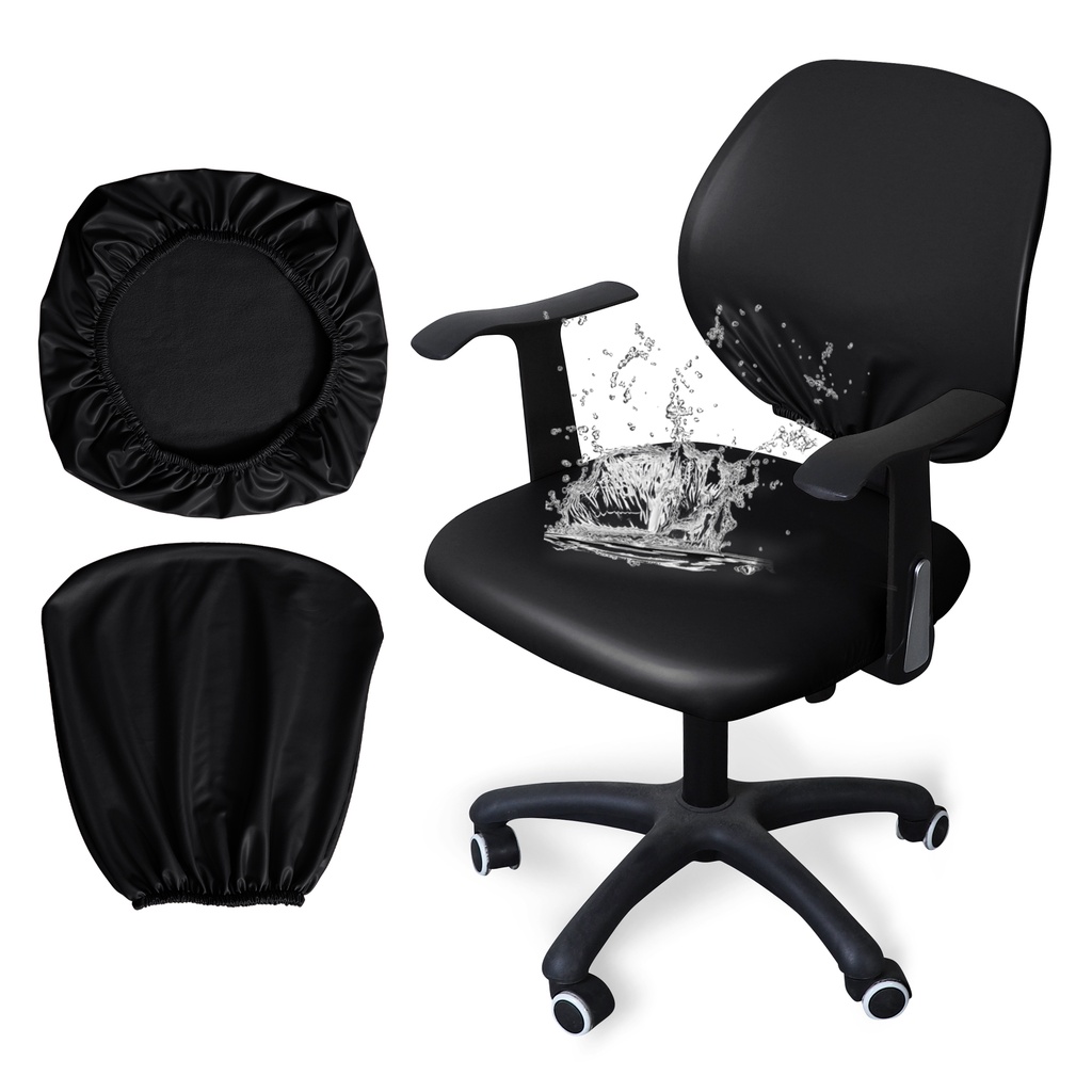 Waterproof Office Chair Cover PU Leather Solid Computer Chair Backrest Cover With Chair Seat Cover Stretch and Washable 9 Colors