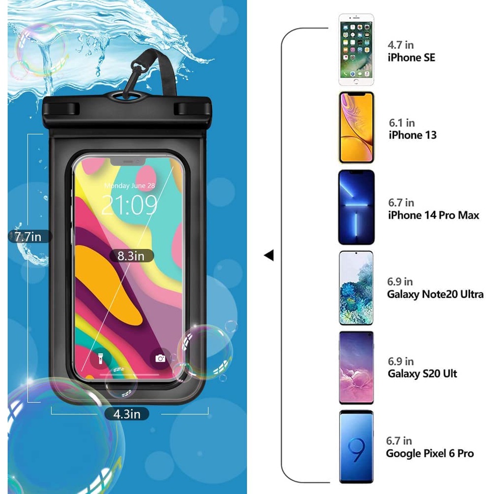Waterproof Phone Pouch Universal Phone Waterproof Case Compatible for iPhone 14 13 12 Max Pro Samsung Galaxy s22 s10 Up to 7.2", IPX8 Cell Phone Dry Bags