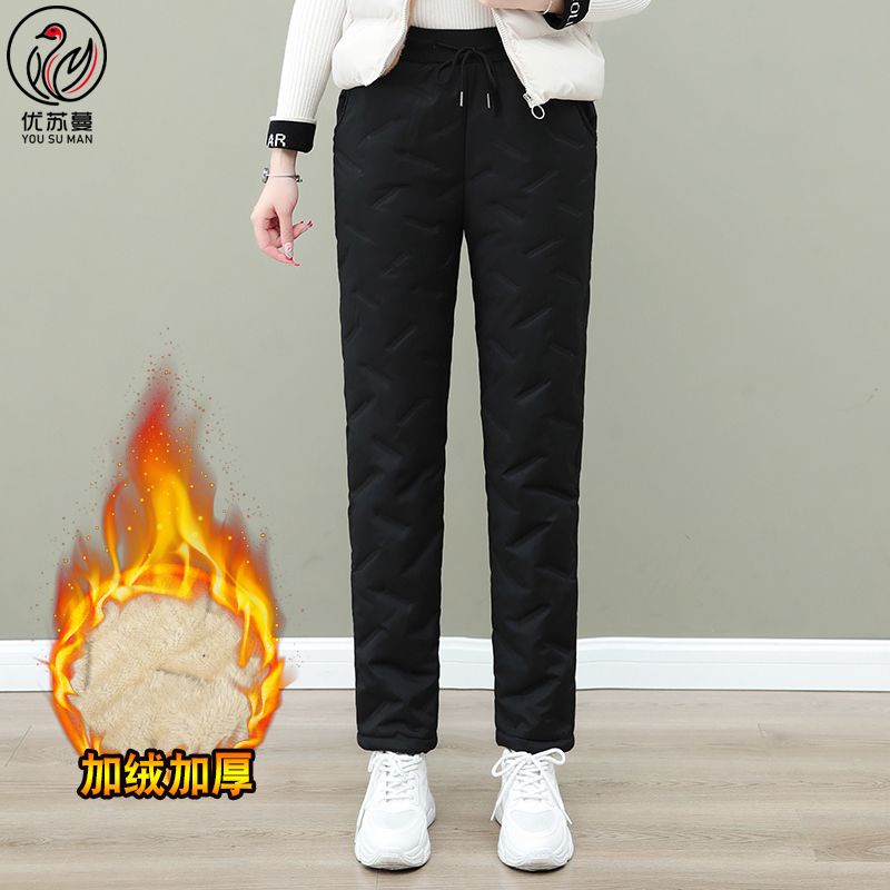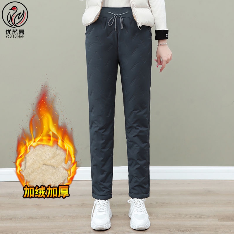 Waterproof Warm Fleece Lining Winter Warm Thickened Large Size Women Warm Pants Northeast Cold-Proof Outer Wear Lamb Fleece Ladies Cotton