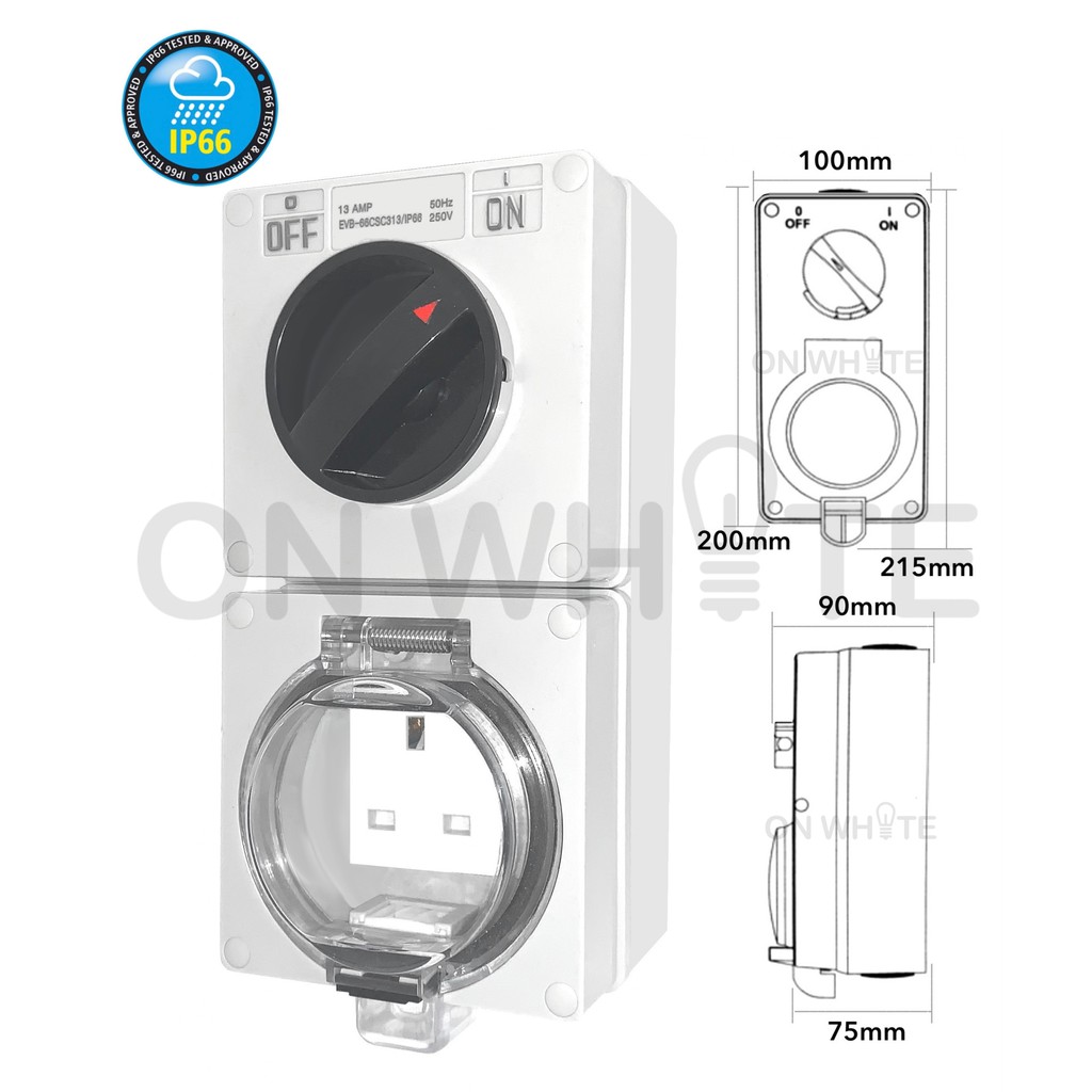 Waterproof/Weatherproof Switch Socket Outlet 13A Isolator iP66 / iP55 CSC313 OUTDOOR