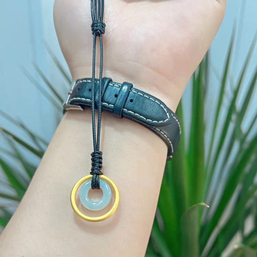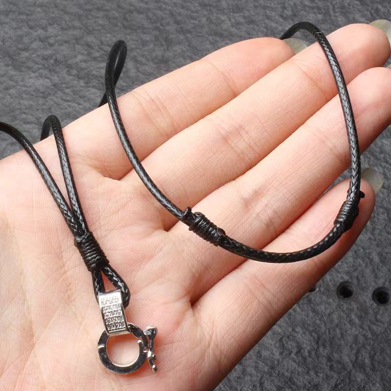 Waterproof leather rope necklace pendant rope safety clasp jade pendant rope men and women jewelry wax rope hand woven rope can wear ring adjustable necklace rope