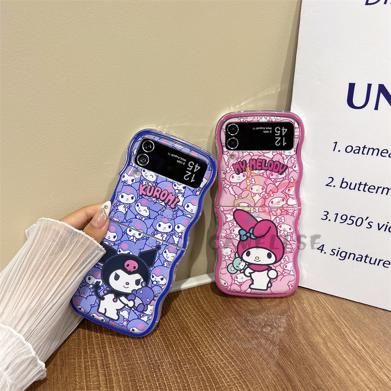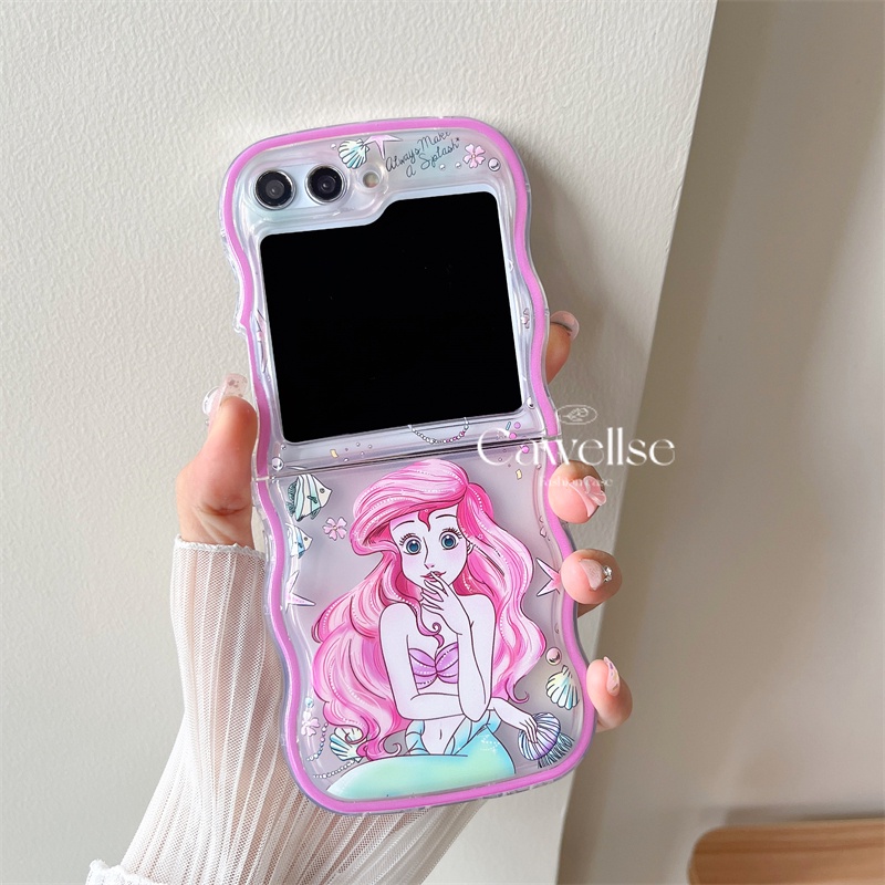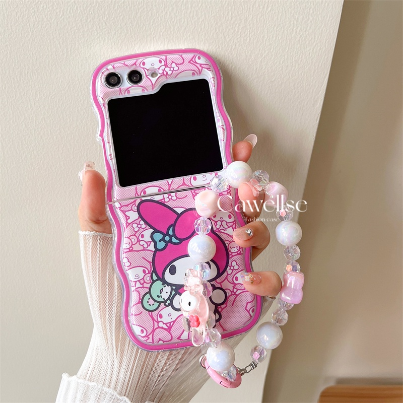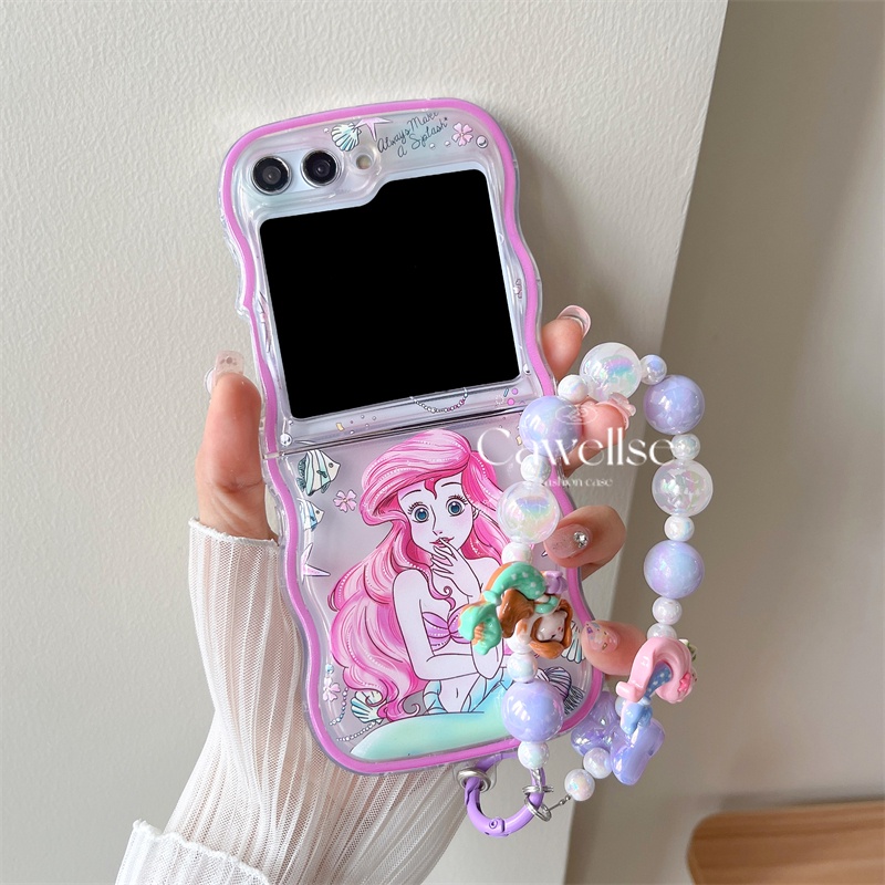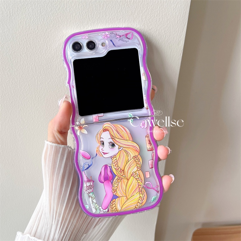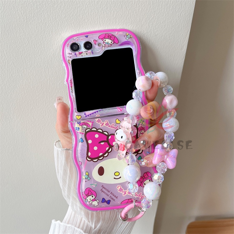 Wave Frame Soft Silicone Casing with Wrist Strap Samsung Galaxy Z Flip 5 Flip 6 Flip 7 7fe Wavy Edge TPU Case Samsung Z Flip 4/3 with Bracelet Cartoon Parinted Transparent Cover