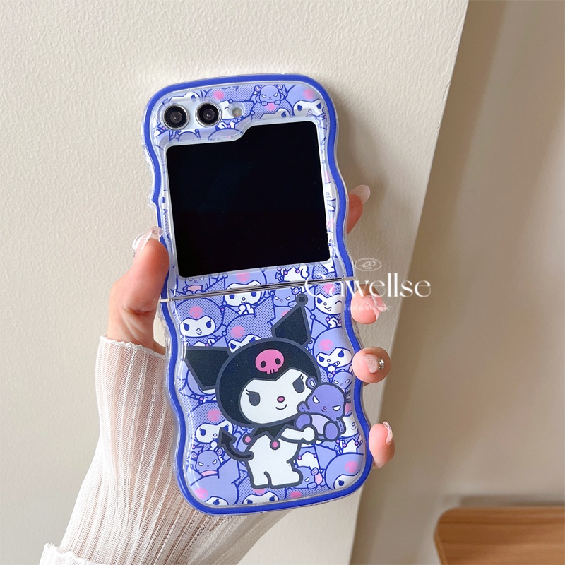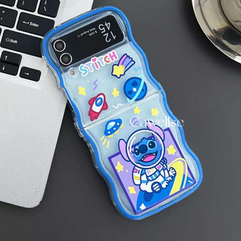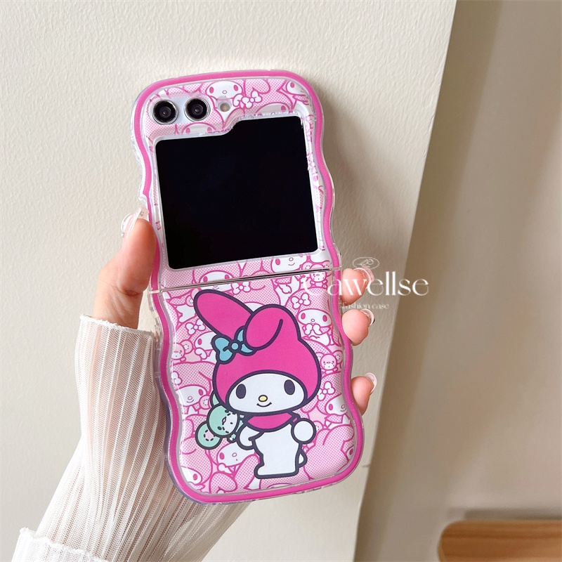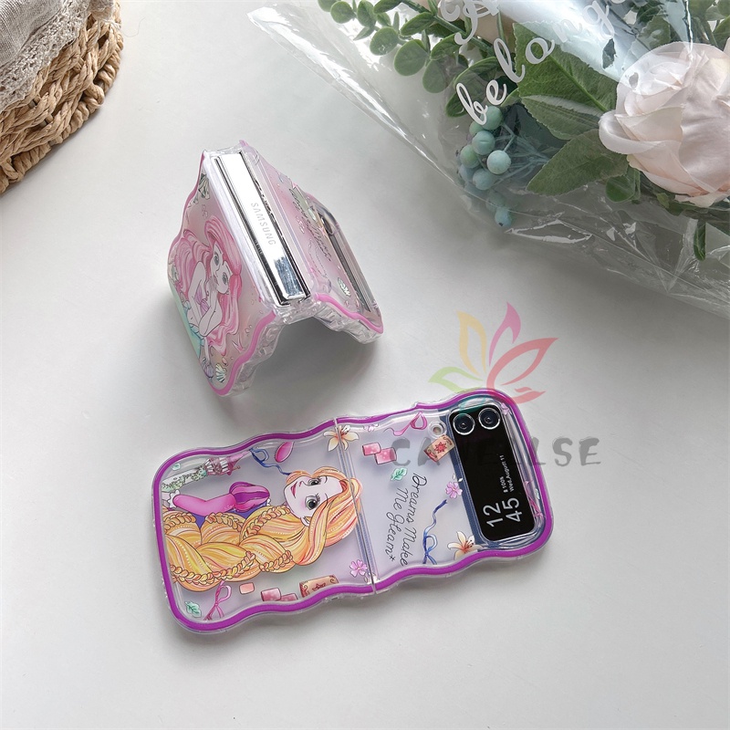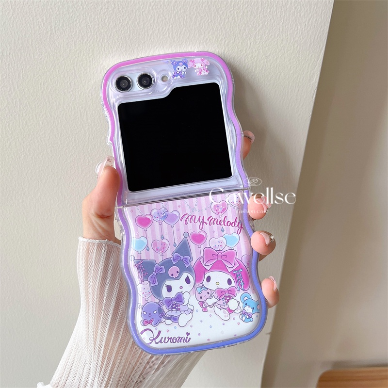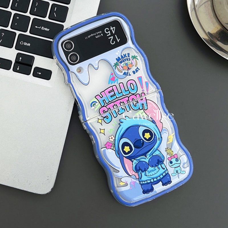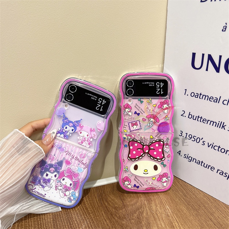 Wave Frame Soft Silicone Casing with Wrist Strap Samsung Galaxy Z Flip 5 Flip 6 Flip 7 7fe Wavy Edge TPU Case Samsung Z Flip 4/3 with Bracelet Cartoon Parinted Transparent Cover