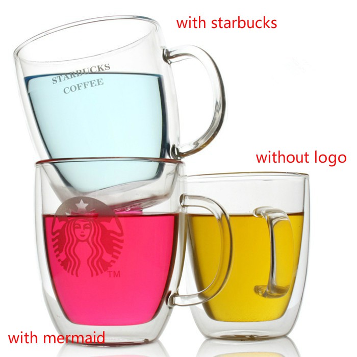 Double Walled Clear Glass Starbuck Coffee Cup Latte Drinking Cup Double layers Glass Mug 375/475ml