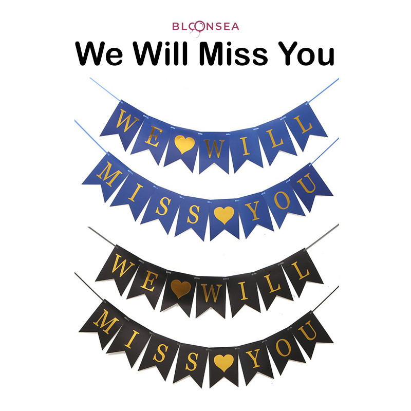 We Will Miss You Banner Letter Pull Flag Retirement Party Decoration Farewell Paper Bunting Background Backdrop Bachelor