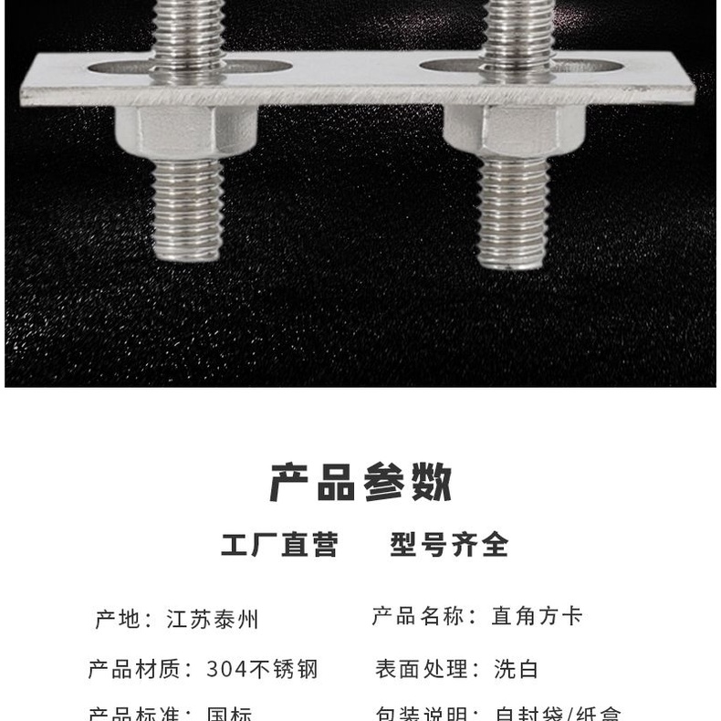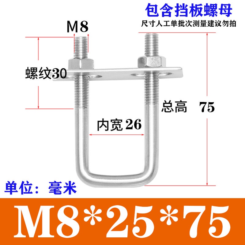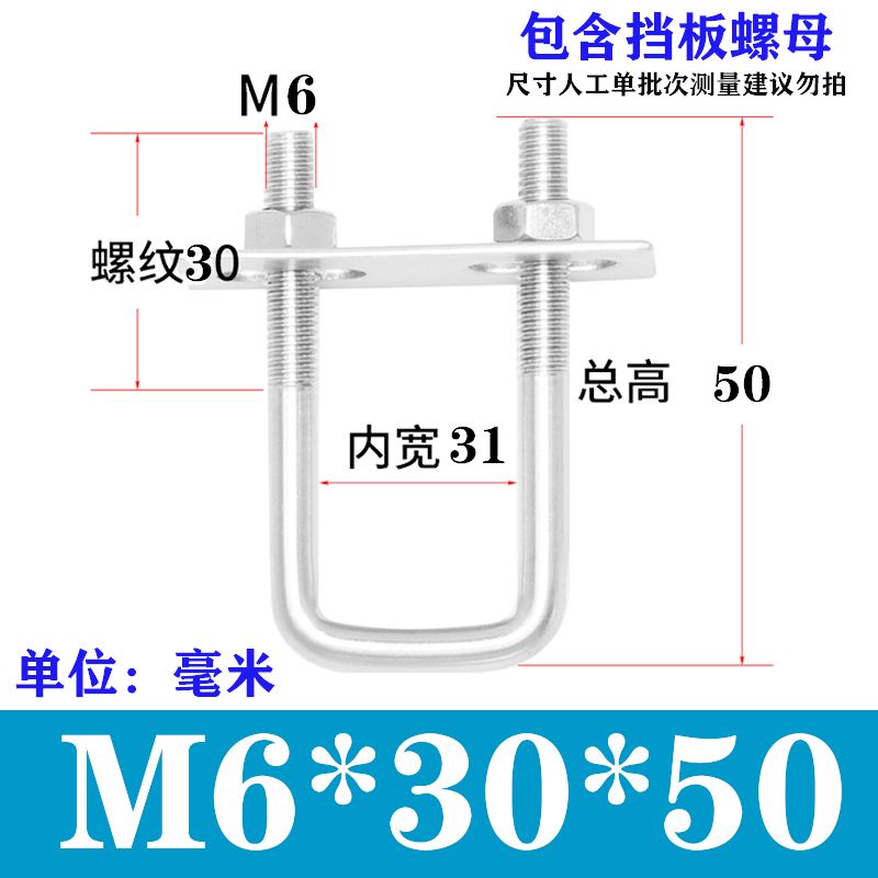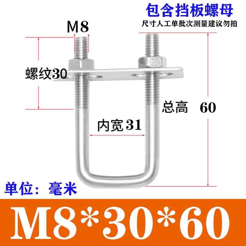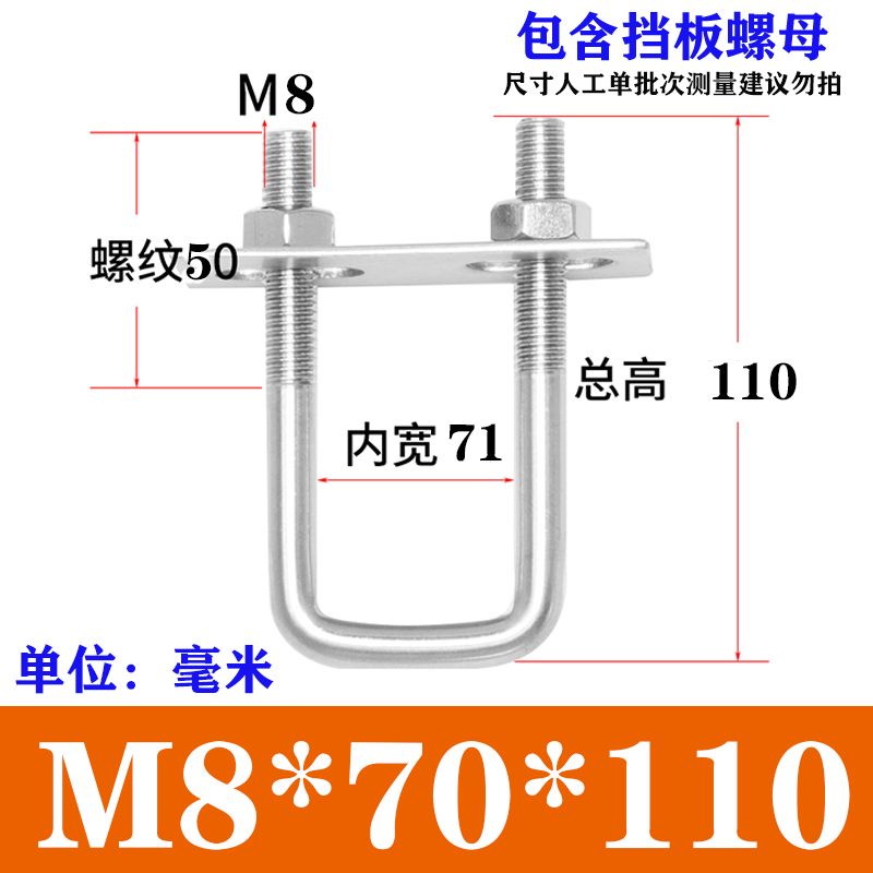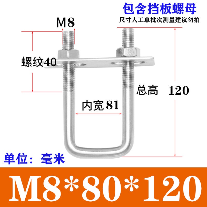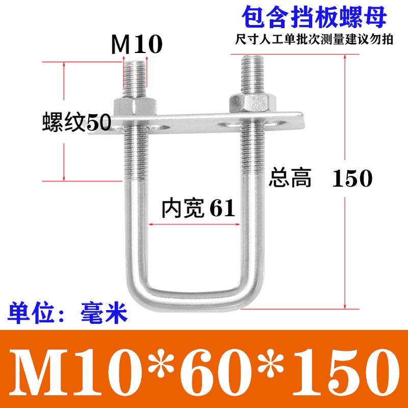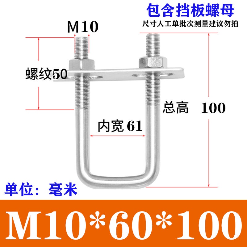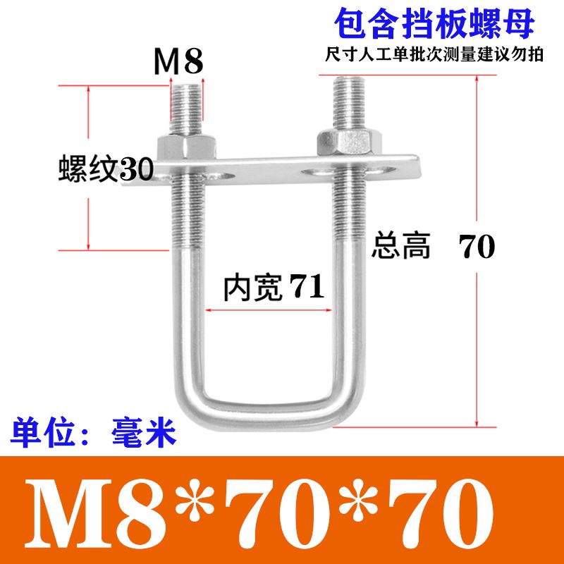 Wec] 304 Stainless Steel Square Card Right Angle U-Shaped Card U-Shaped Bolt Right Angle Screw U-Shaped Square Card Tube Buckle Square Pipe Clamp Pipe