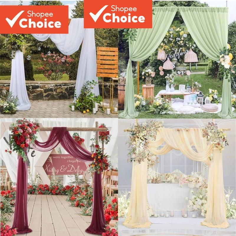 Wedding Arch Drapes White Sheer Backdrop Curtain Wedding Party Decoration Pink Polyester Fabric Draping Hanging Tulle Valance Scarf Gauze Wedding Decorations Party Needs